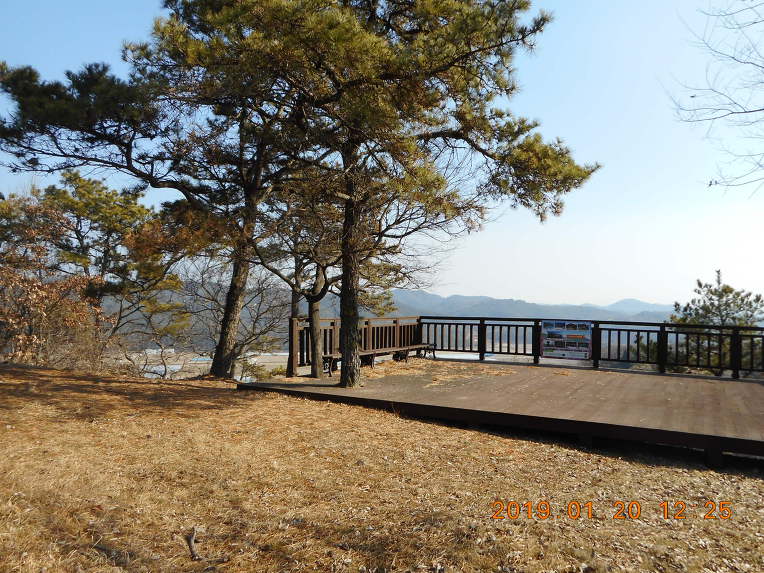 이내 전망데크와 팔각정자가 설치되어 있는 호미산 고스락(102.7m)에 올라섭니다.먼저 지도상에 표시된