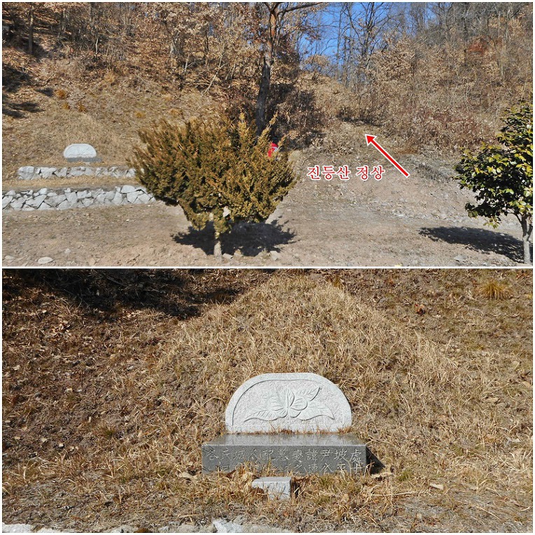 바로 옆 산자락에 있는 '파평윤씨'묘역 우측으로 열리는 희미한 산길로 올라붙으며 진등산 산행에 들어갑니다.