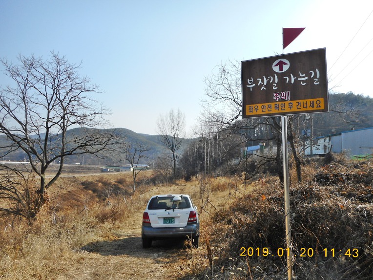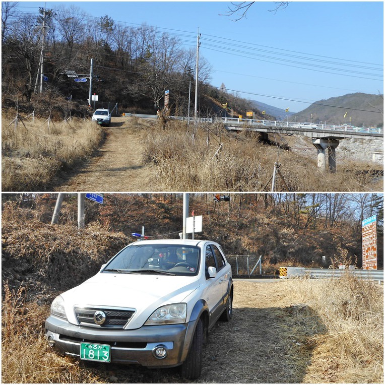 그 초입에 '부잣길 가는길'표지판이 세워져 있는게 보이는데, 이 부잣길 들머리 한쪽편에 애마를 주차하고는