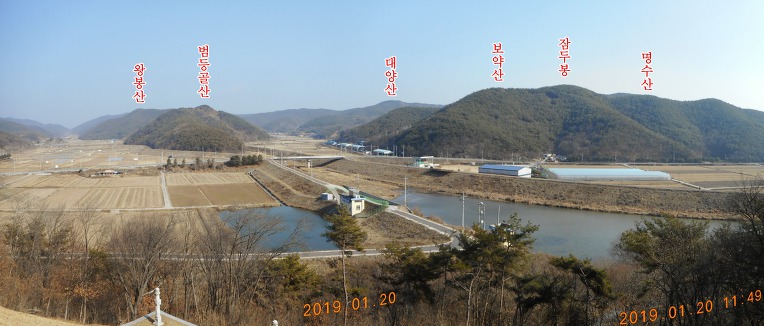 함안군의 경계를 이루며 유유히 흐르는 남강과 백산리 들판이 시원스럽게 조망이 되네요.