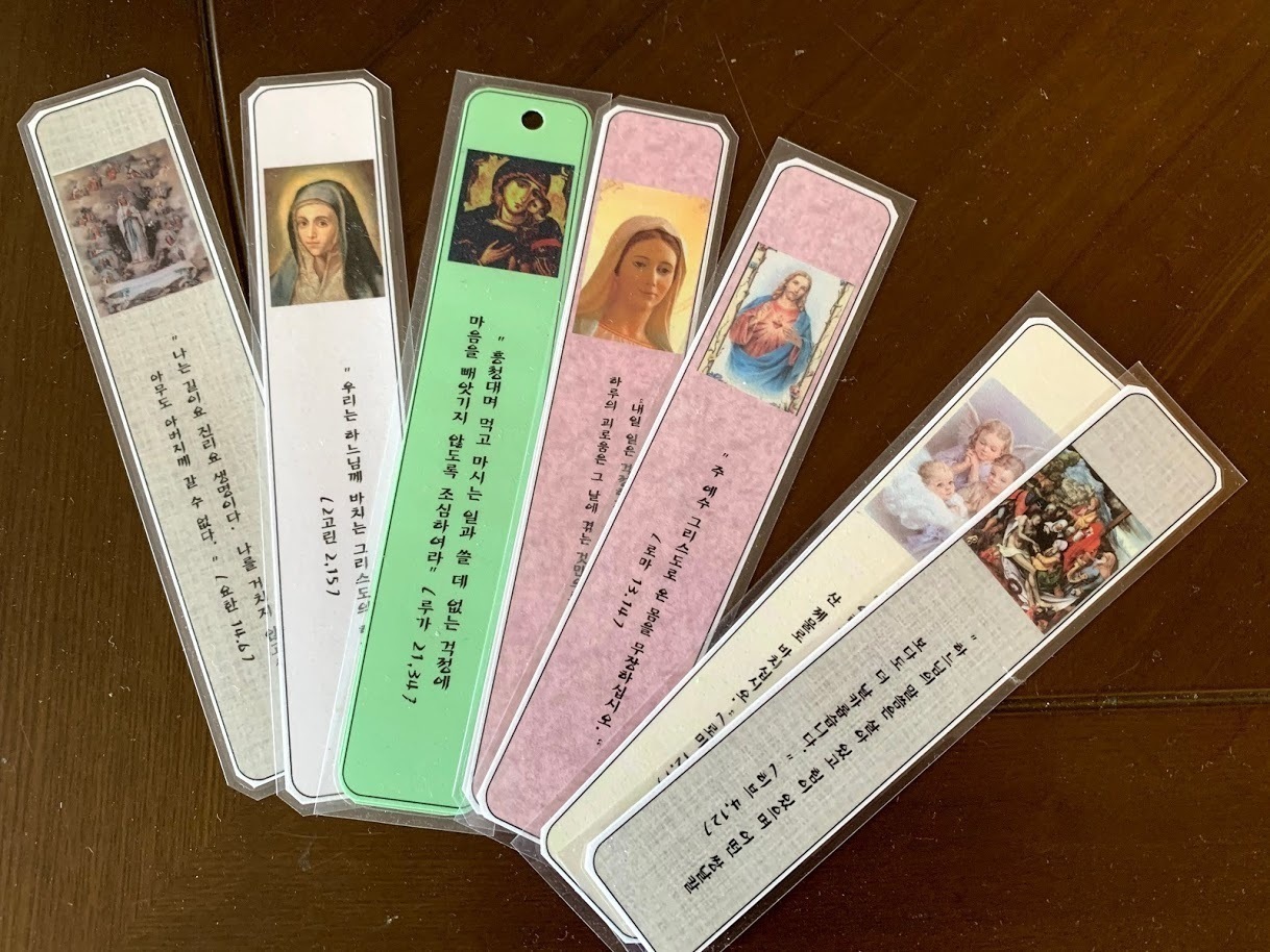 어제 저녁에 만든 말씀의 책갈피를 나누어 주기로 생각하고 새벽미사 때