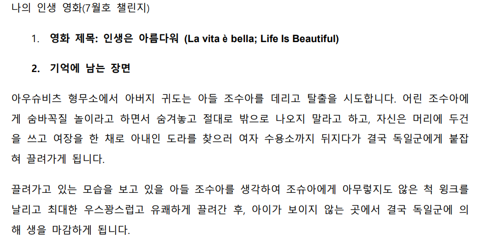 7월호 챌린지 '나의 인생 영화'에 응모해서 당첨되었다.