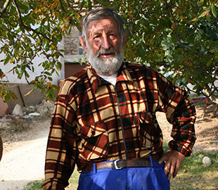 그는 순례자들에게 손수 만든 개암나무 지팡이를 만들어 선물해줍니다.