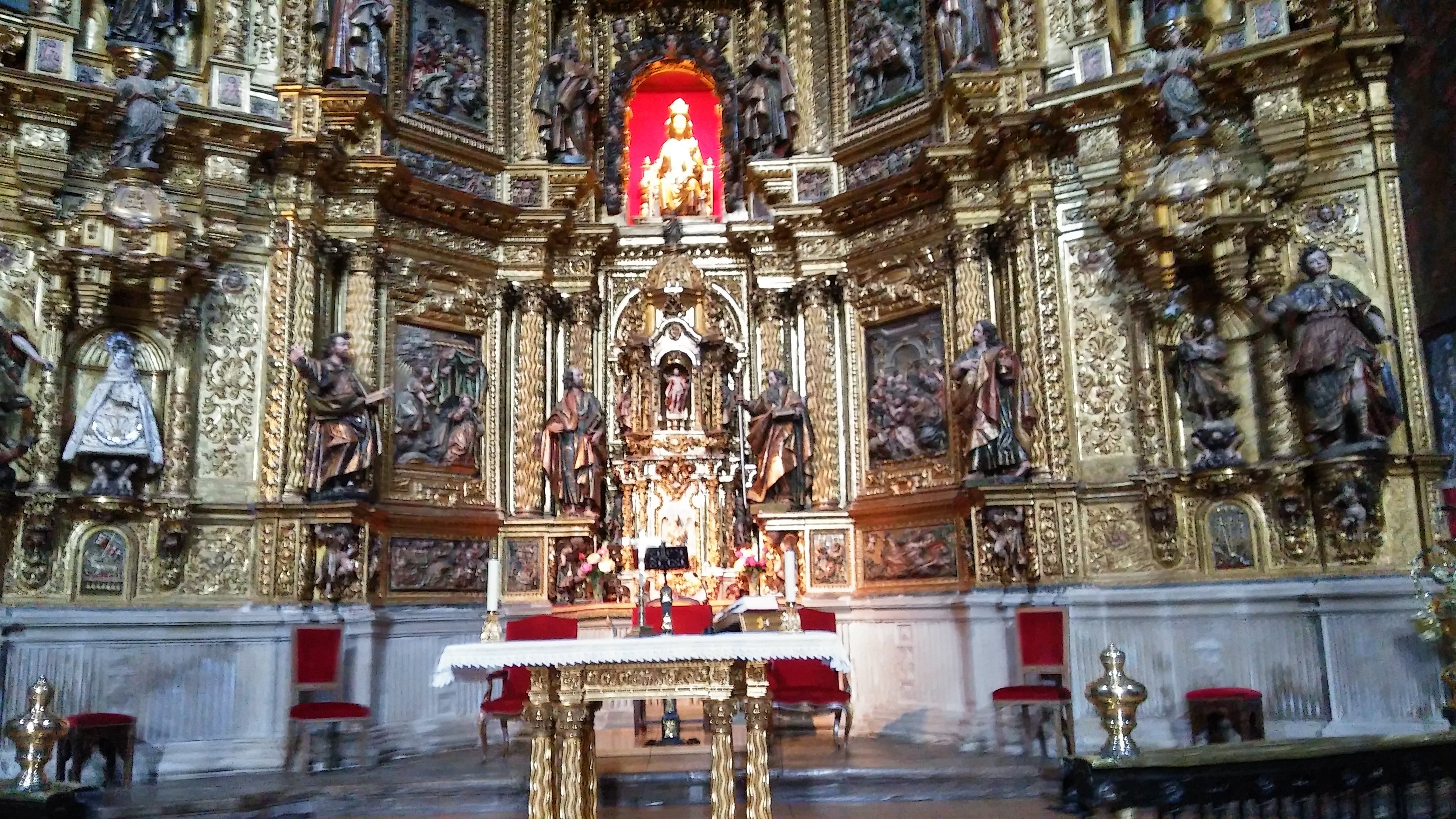 산따 마리아 성당의 아름다운 복도 한가운데에는 그늘에서 보관중인 성모상이 있습니다.