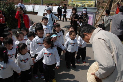 아이들에게 고개 숙인 노간지.