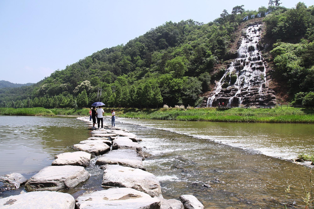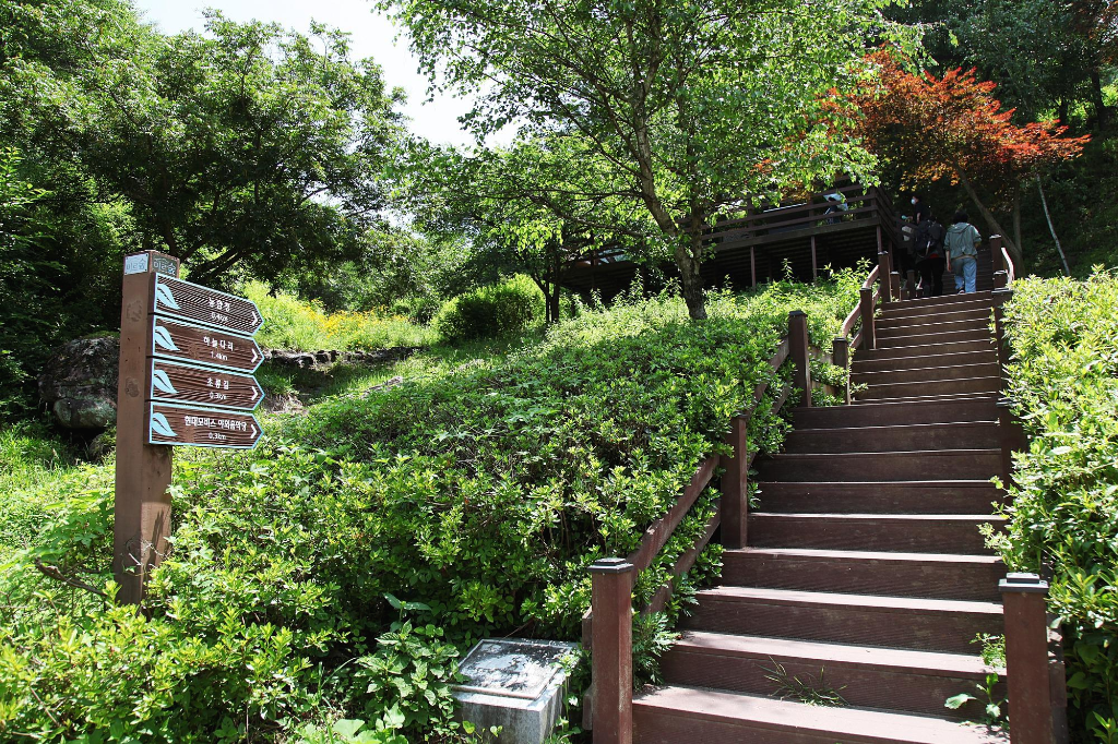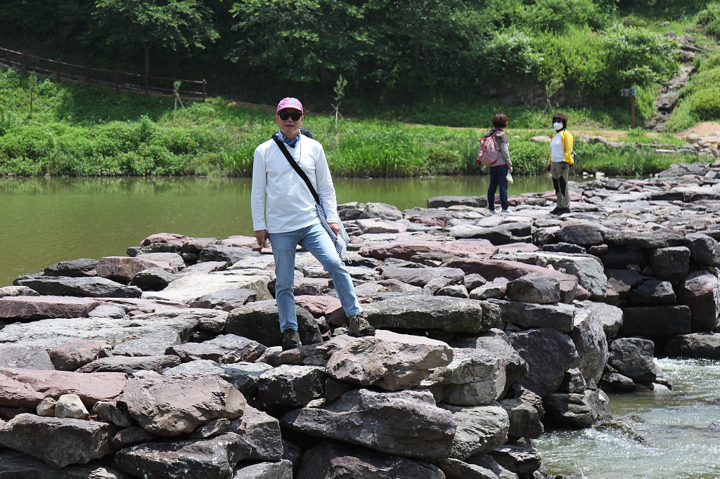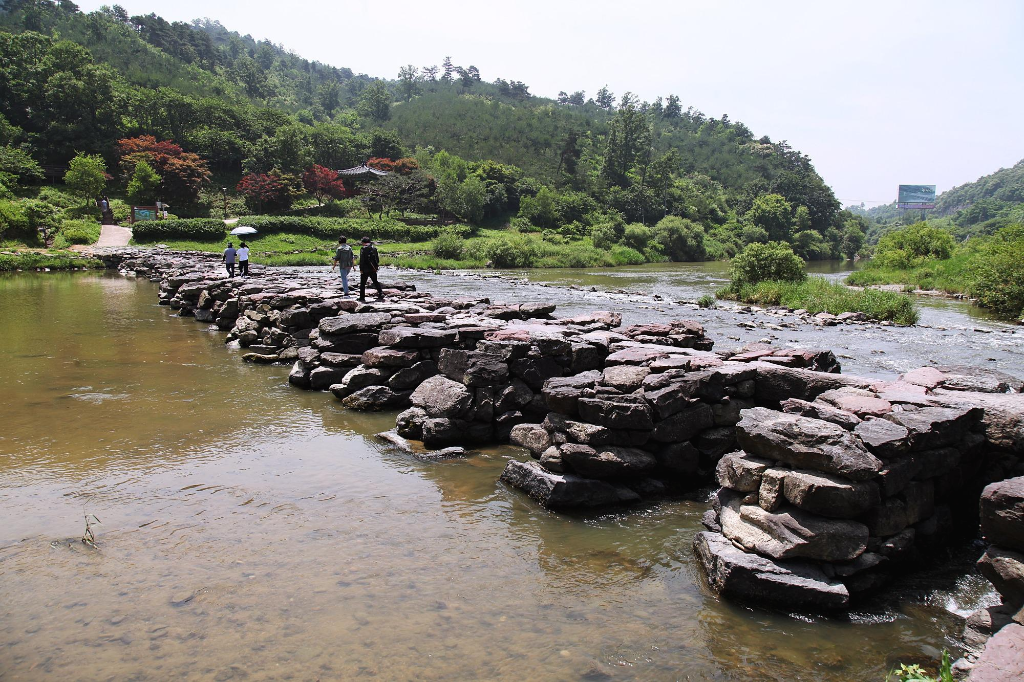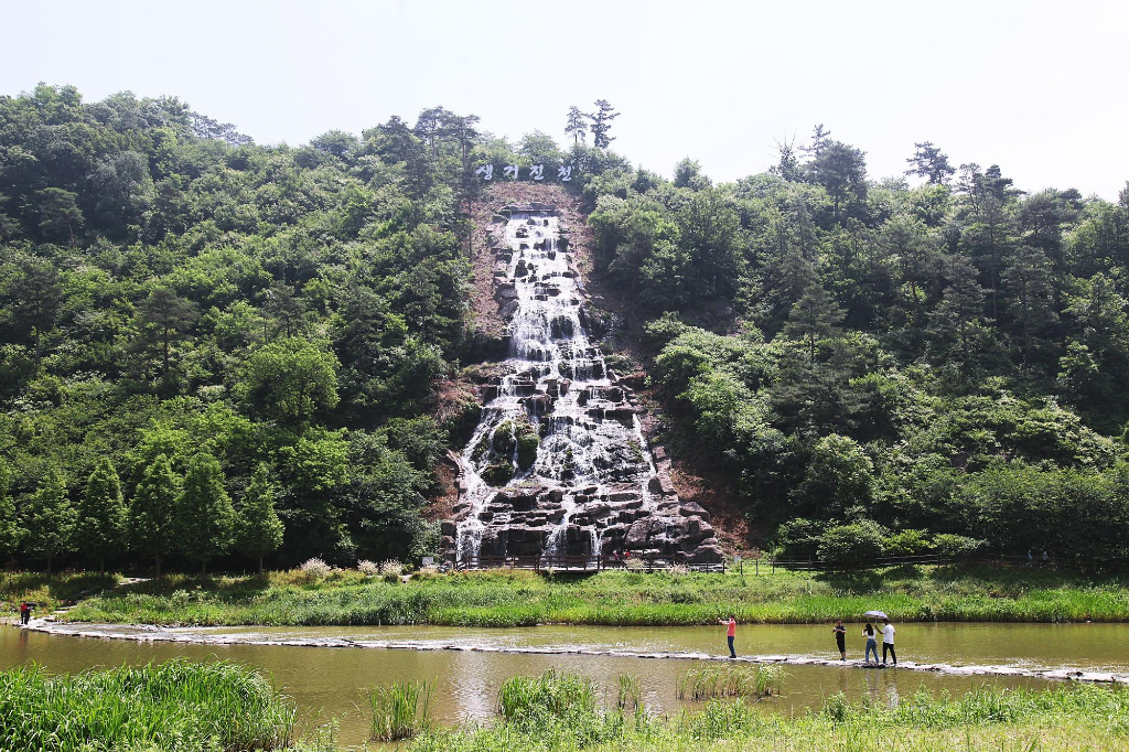 지만 농다리도 지나는 길에 잠시 둘러보는 여정이라서 발길을 돌려 천변 언덕에 조성한 인공폭포를 거쳐 징검다리