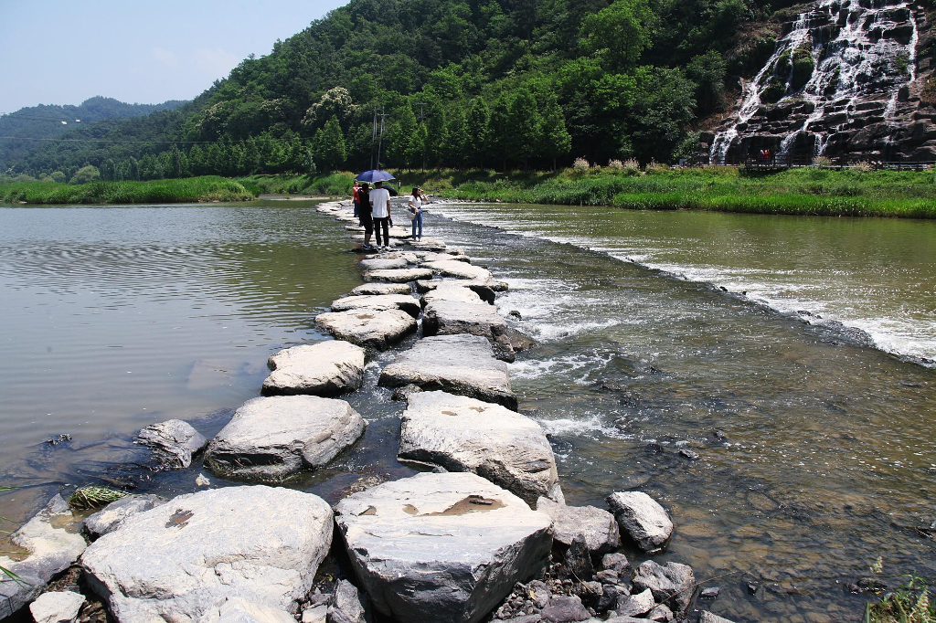 ▼농다리 윗쪽 징검다리와 인공폭포