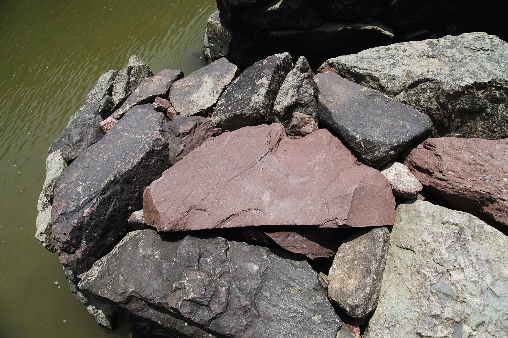 돌들로 퇴적암 일종인 사암(沙岩)과 일부 역암(礫岩)들이다. 이들 크고 작은 돌덩이들을 꿰맞추어 폭 3,6m의 교각을