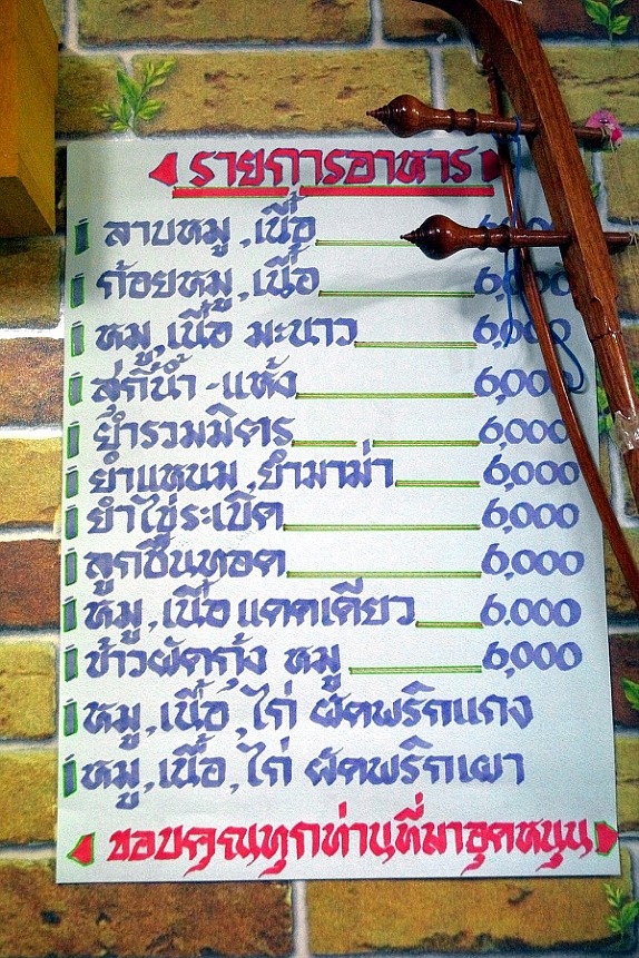 이곳의 메뉴판은 태국어로 쓰여져 있어요.