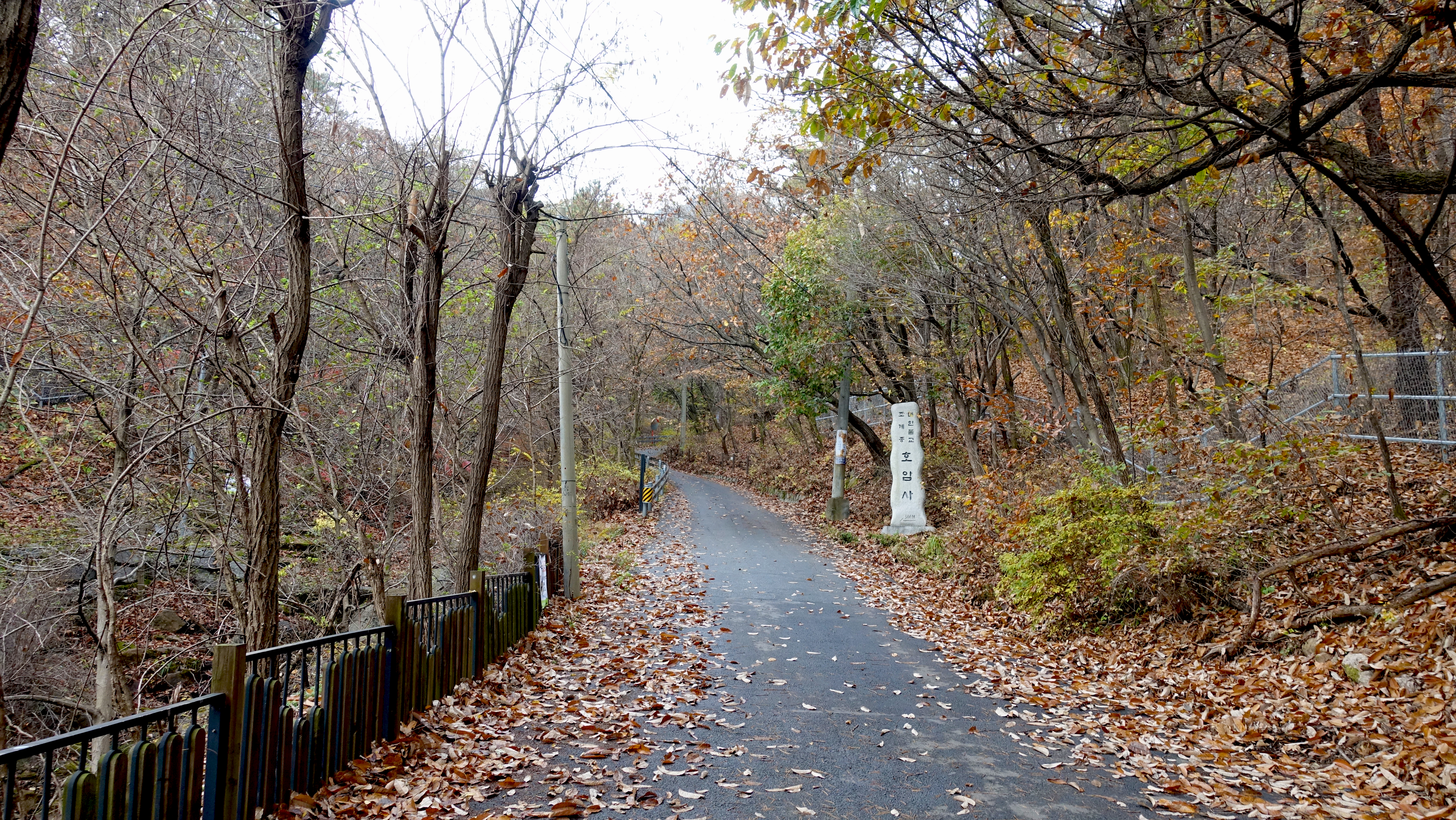 - 호암사 입구 등산로 초입에서 호암사가지는 포장도로인데 도로를 걷는데 체력 소모가 조금 있다.
