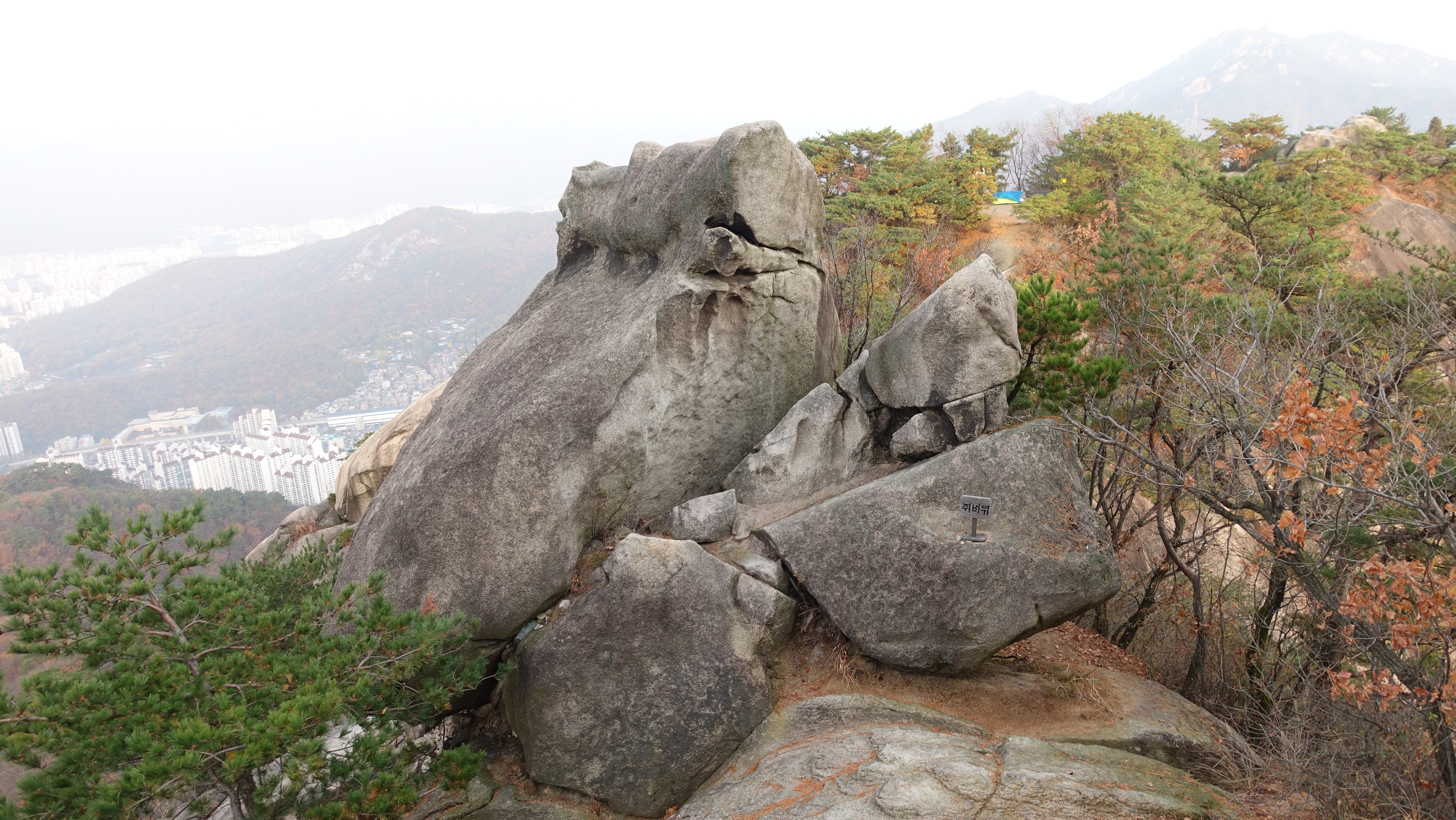 바위 위에서 조망을 할 수 있는데 이곳에서 몇몇 산객들이 인증 사진을 담고 있다.