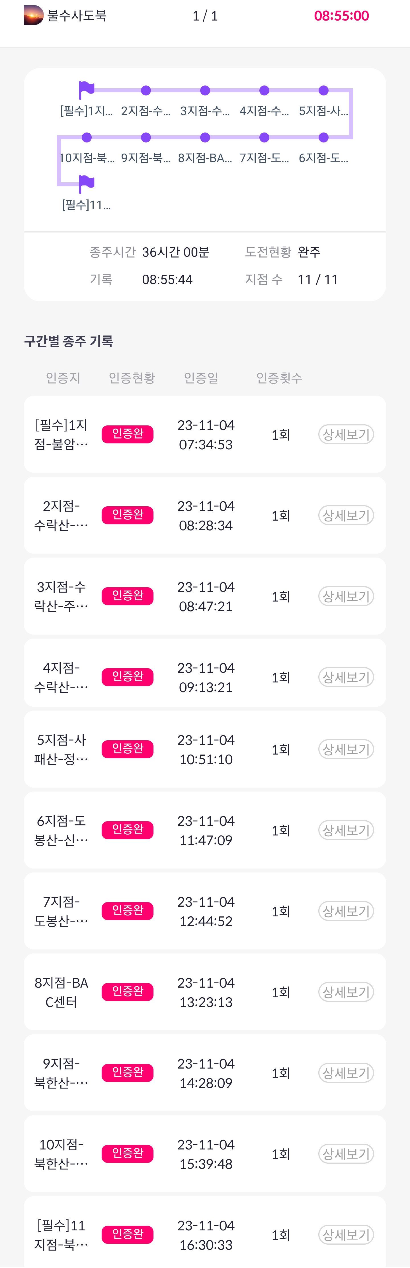 아직 인증은 다 되지 않았지만 그래도 인증지에 GPS 인증을 다하고 사진도 다 올렸으니 이번에는 정확하게 끝난 것 같다.