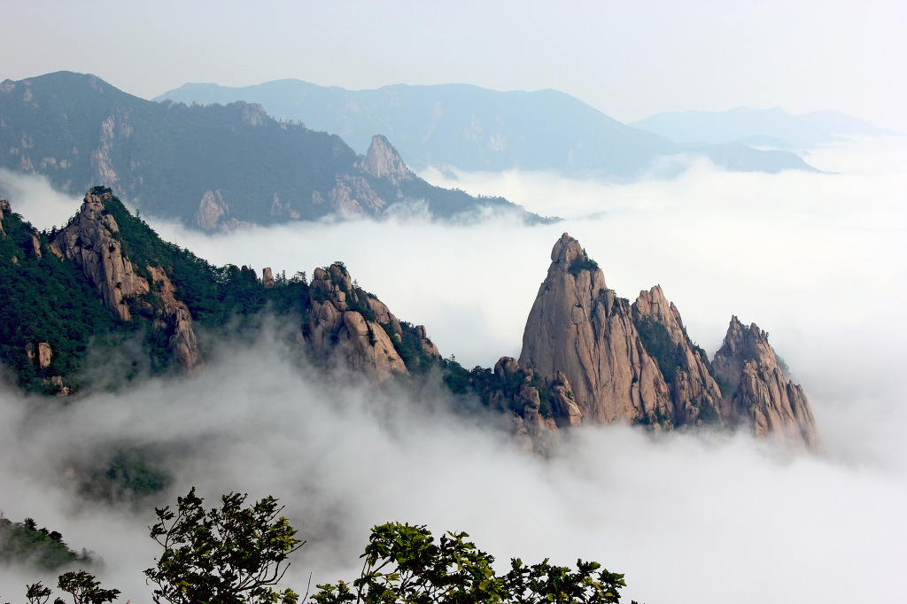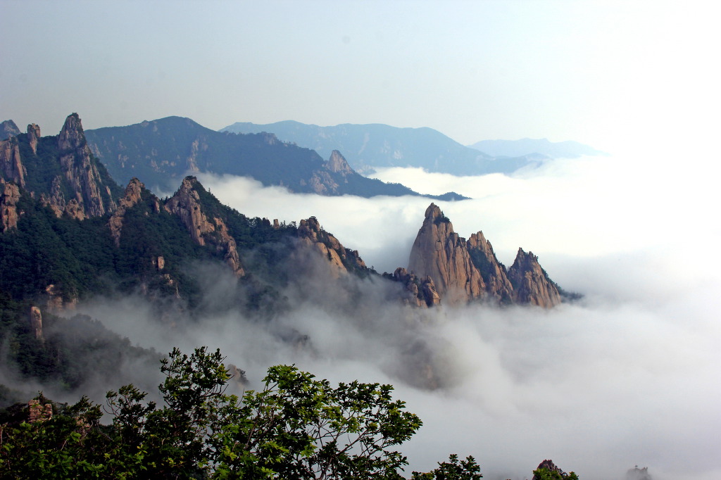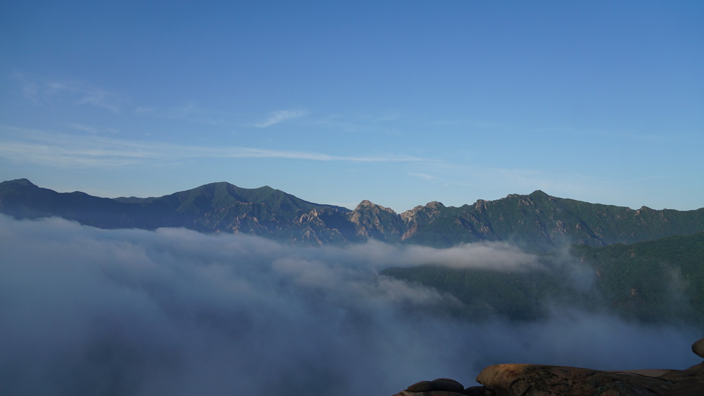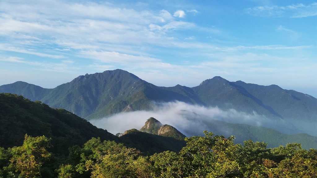 맑은 날 여름산에서는 산안개가 많이 발생합니다. 산정으로부터 바람이 불면 쉽게 소산되며 지속 시간이 짧으나 물방울 입자가 큰 것이 산안개의 특징입니다.