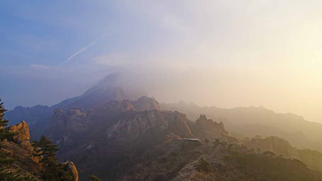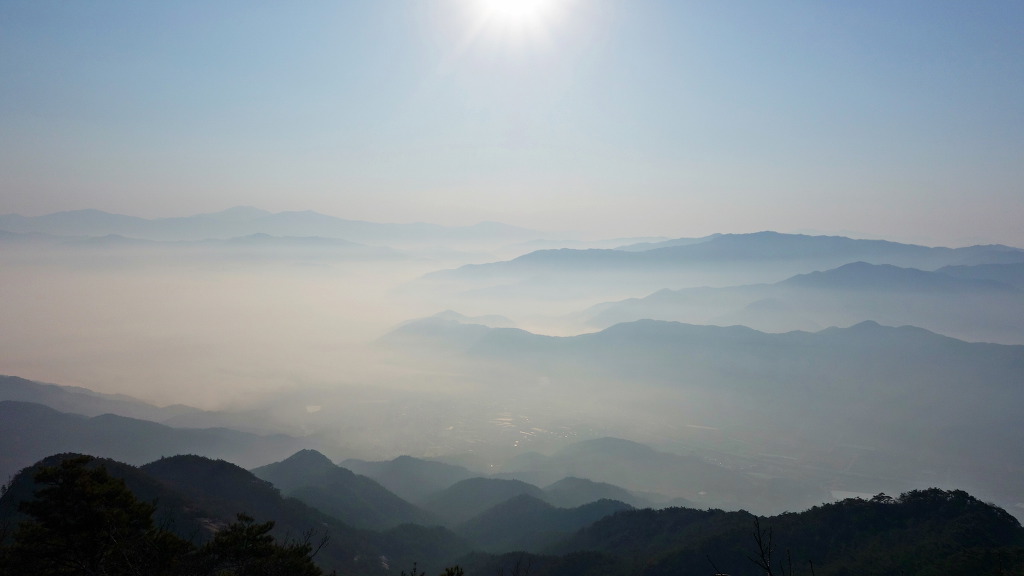 골안개는 일정한 높이로 안개가 깔리기 때문에 지표면에서는 시계를 분간할 수 없지만 능선이나 산 위로 올라가면 안개에서 벗어날 수 있습니다.