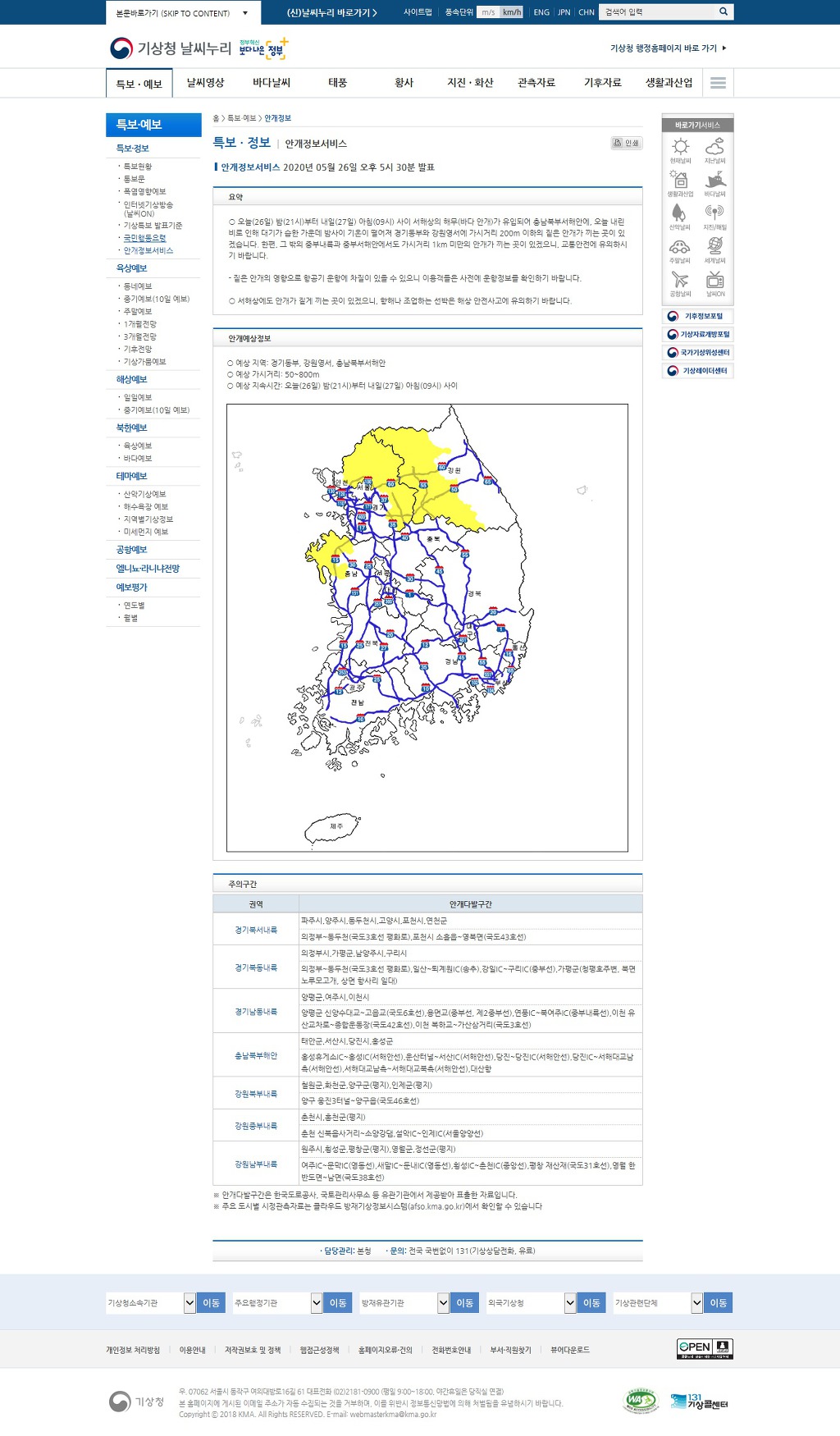1) 기상청에서 안개정보서비스를 보면 지역을 알 수 있다.