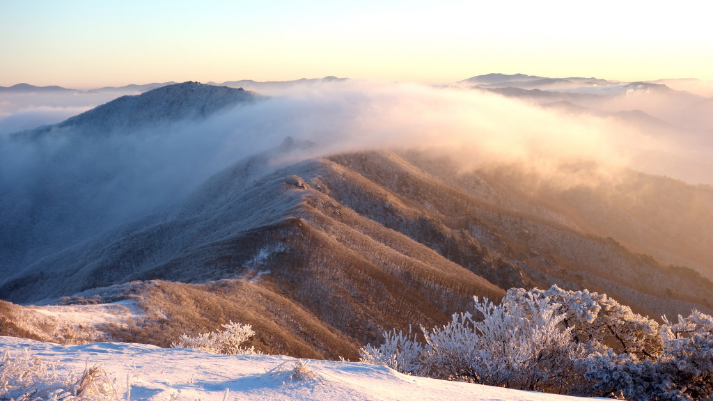 골안개가 장대하게 펼쳐진 모습은 장관을 연출하곤 합니다. 이를 흔히 운해라 부르며 산악사진의 좋은 소재가 되기도 합니다.