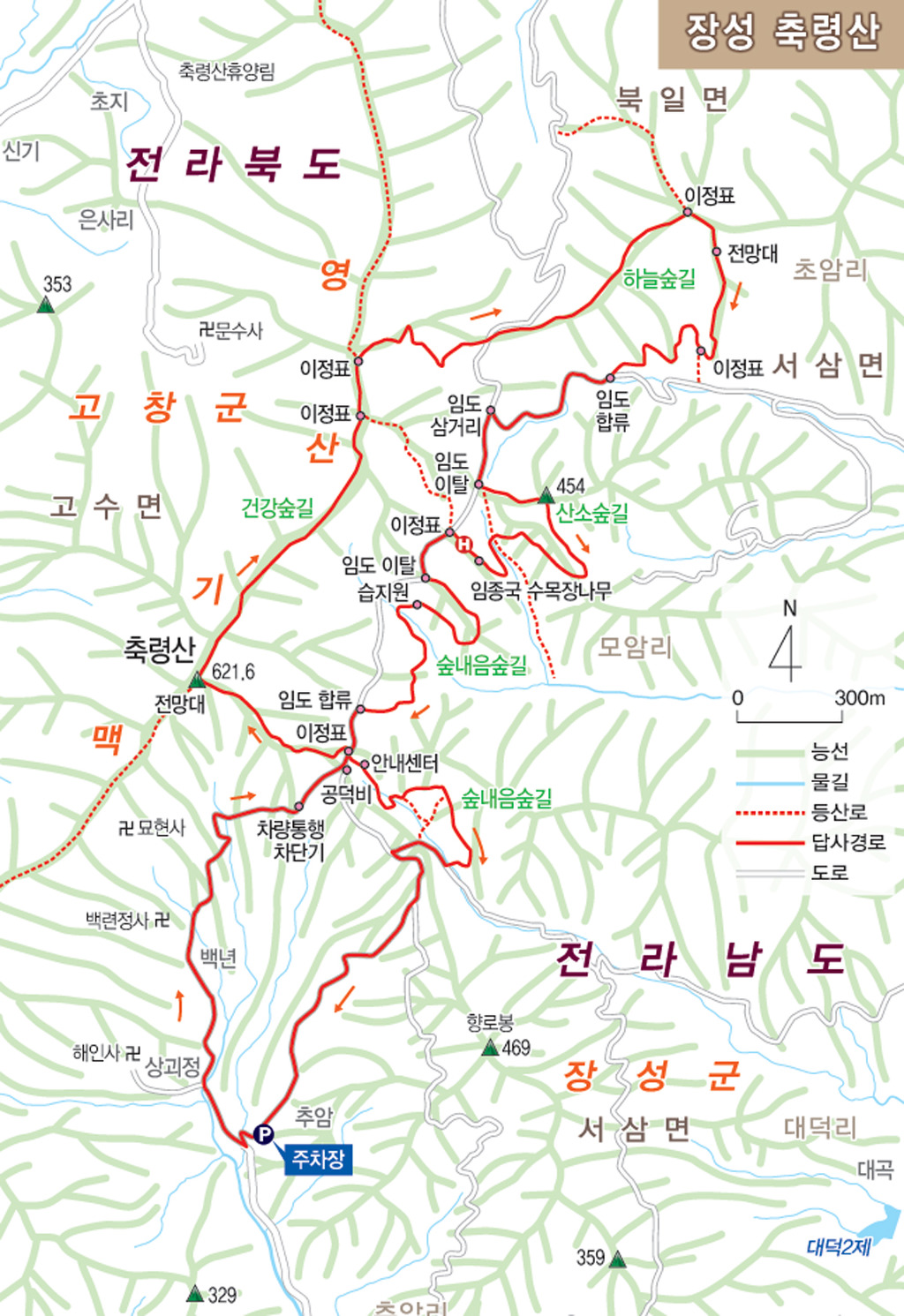 축령산은 전남북의 경계를 이룬다. 6·25전쟁 등 민족적 수난기에 깊은 상처를 남긴 산이다.