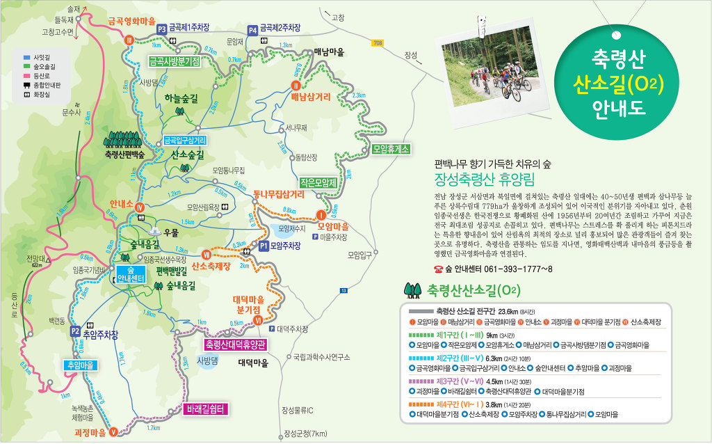 안내소 - 모암 산림욕장 1.7k - 모암 통나무집 - 모암저수지 - 모암마을 2.5k