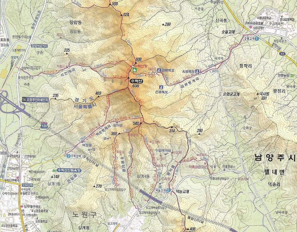 수락산을 북에서 남쪽까지 종주할수 있는 산행기점코스이다. 정상에 올라 장암역으로 하산하는 방법도 있다.