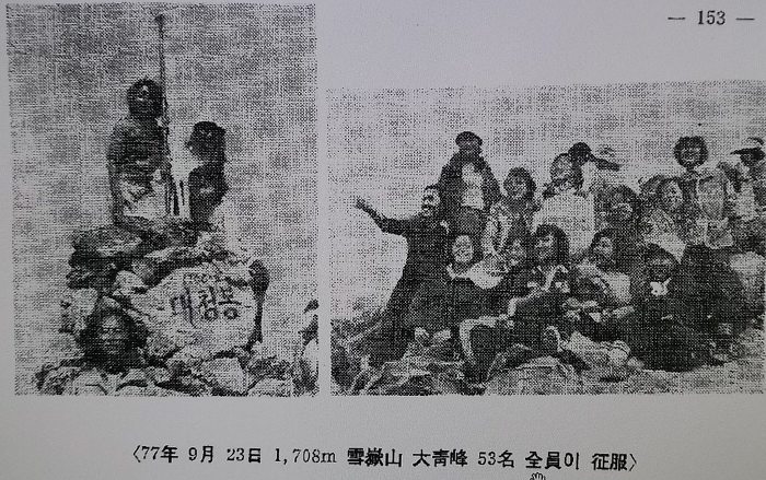 사회생활학과생들은 단체로 77년 9월 23일 대청봉 정상에 오릅니다.