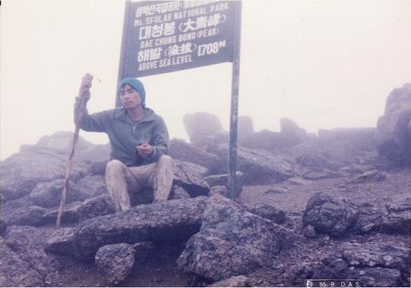 이 사진은 제가 고등학교 2학년 겨울 허영호씨를 만나 한국산악회 동계등산학교에 게스트(?)로 참가하여 마지막날 죽음의계곡~대청봉 코스 등반을 하고 정상에서 찍은 사진입니다. 77년 고 고상돈씨가 에베레스트 등정을 한 얼마 후라 저도 한번 멋지게 폼(?) 잡아 본 사진입니다. ^^