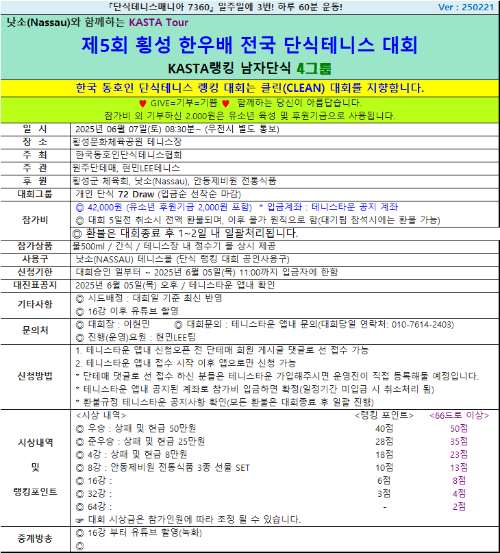 2025.6.7.(토) 제5회 횡성 한우배 남자 4그룹 작성자이현민(원주단테매)|작성시간25.05.14|조회수330 목록 댓글 0 글자크기 작게가 글자크기 크게가 다음검색 현재 게시글 추가 기능 열기 북마크 신고 센터로 신고 댓글 댓글 0 댓글쓰기 답글쓰기 댓글 리스트