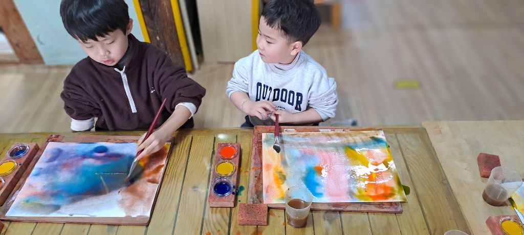 붓에 색만 입혔는데 마술처럼 작품이 되네