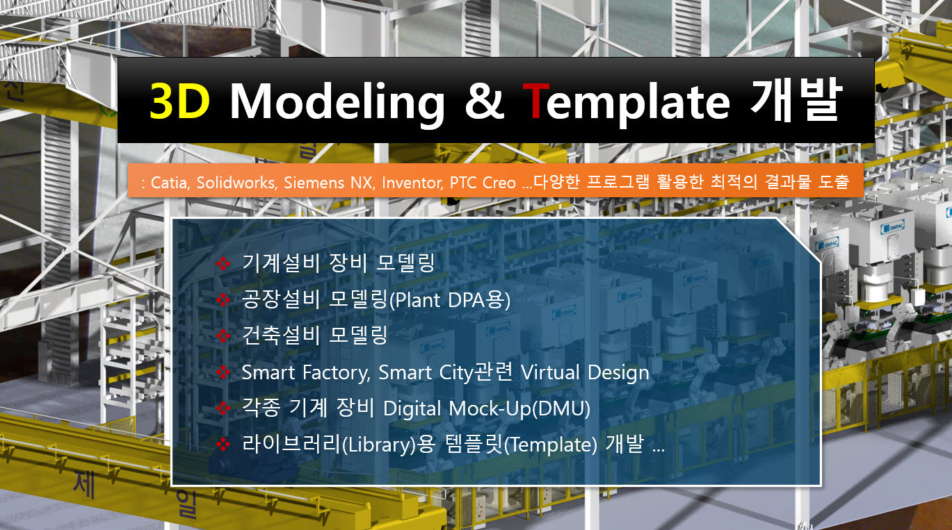 * 각종 기계장비/건축설비 관련 3D모델링,DPA,DMU,Template개발 용역을 제공해드립니다.