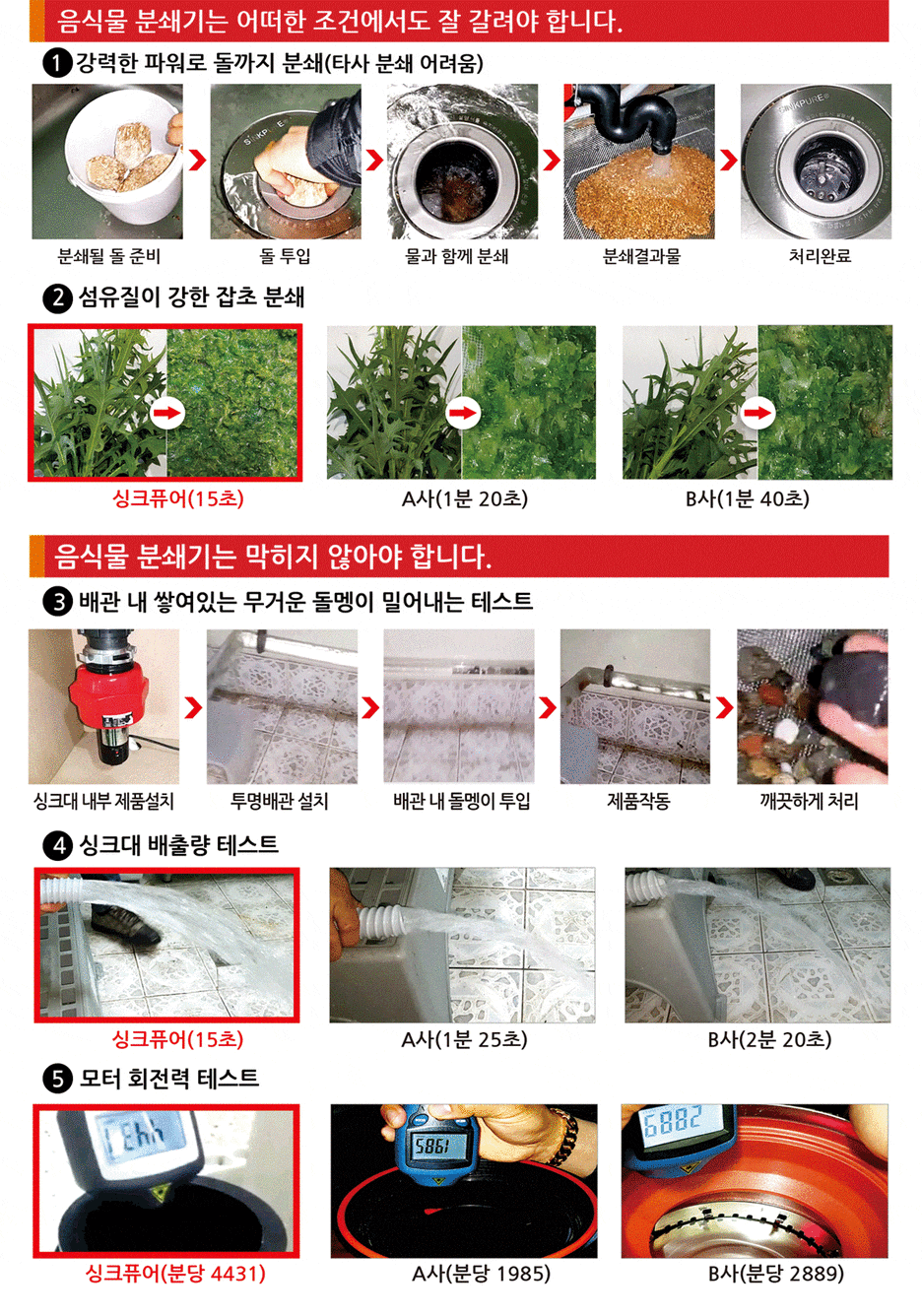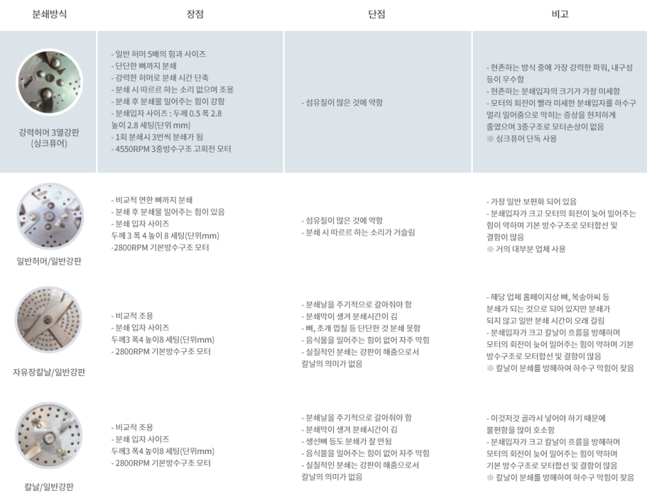 음식물 분쇄기는 어떠한 조건에서도 잘 갈려야 합니다.