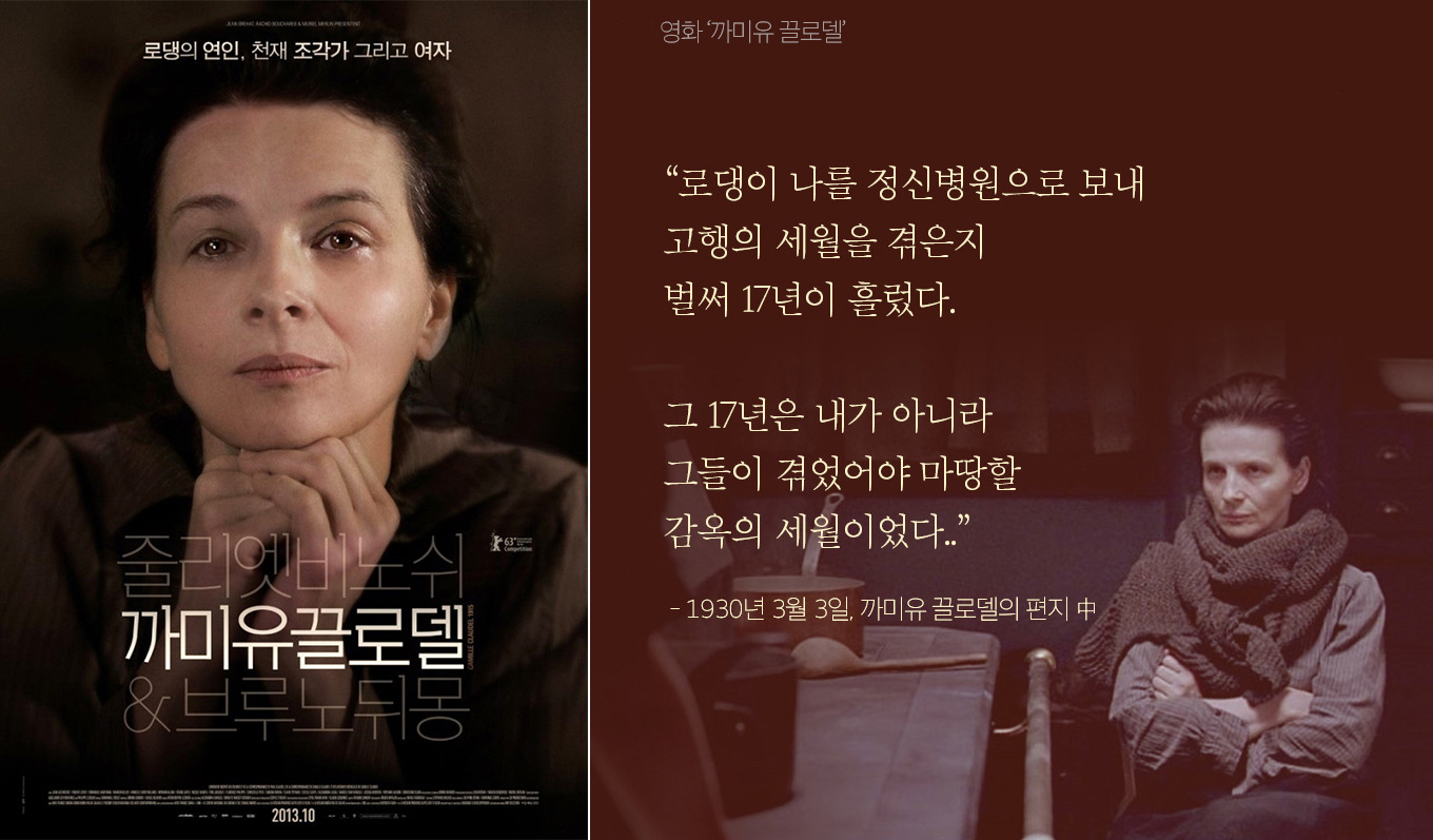 열아홉 나이에 '로댕'의 제자로 들어간 '클로델'은 조각가로서의 천재적 재능을 발휘하고 곧바로 로댕의 연인이 되지만 이때부터 불행 시작! ㅠ.