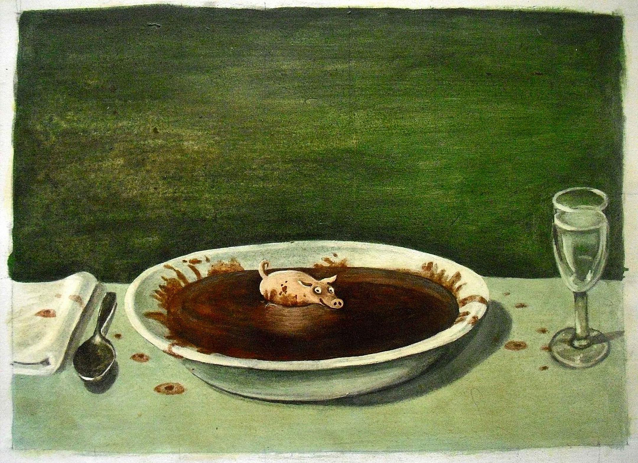 토끼와 핑크 돼지 등이 주인공인데, 결코 밝은 분위기는 아니지만 웃음을 자아내는 페이소스가 담겨있는 일러스트들입니다.