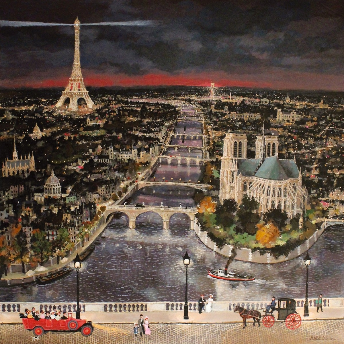 그림을 자세히 들여다보면, 마차와 올드카가 같이 다니고, 제복을 입은 경관, 화려하게 차려입은 파리의 귀부인 등 낭만적인 모습을 만날 수 있답니다.