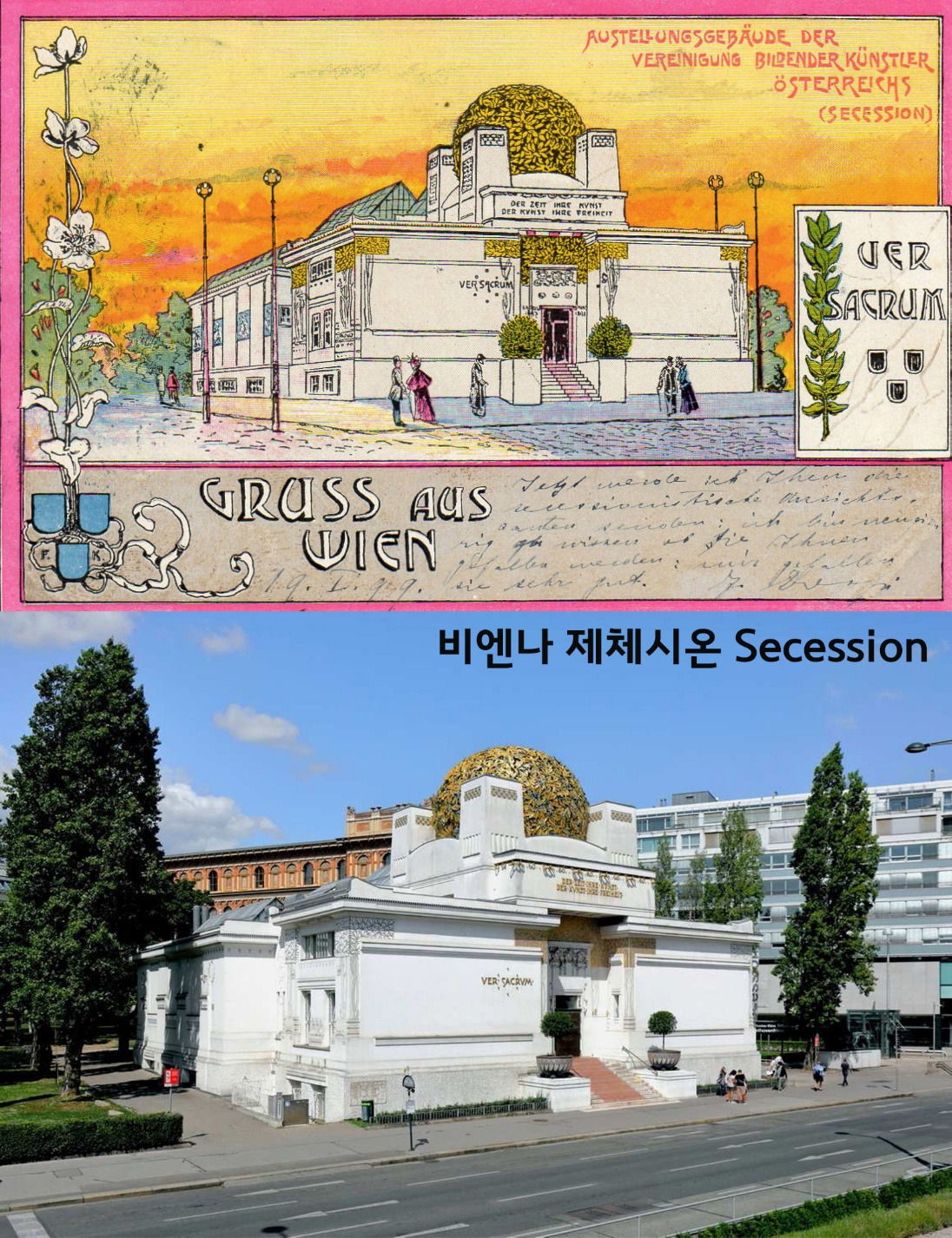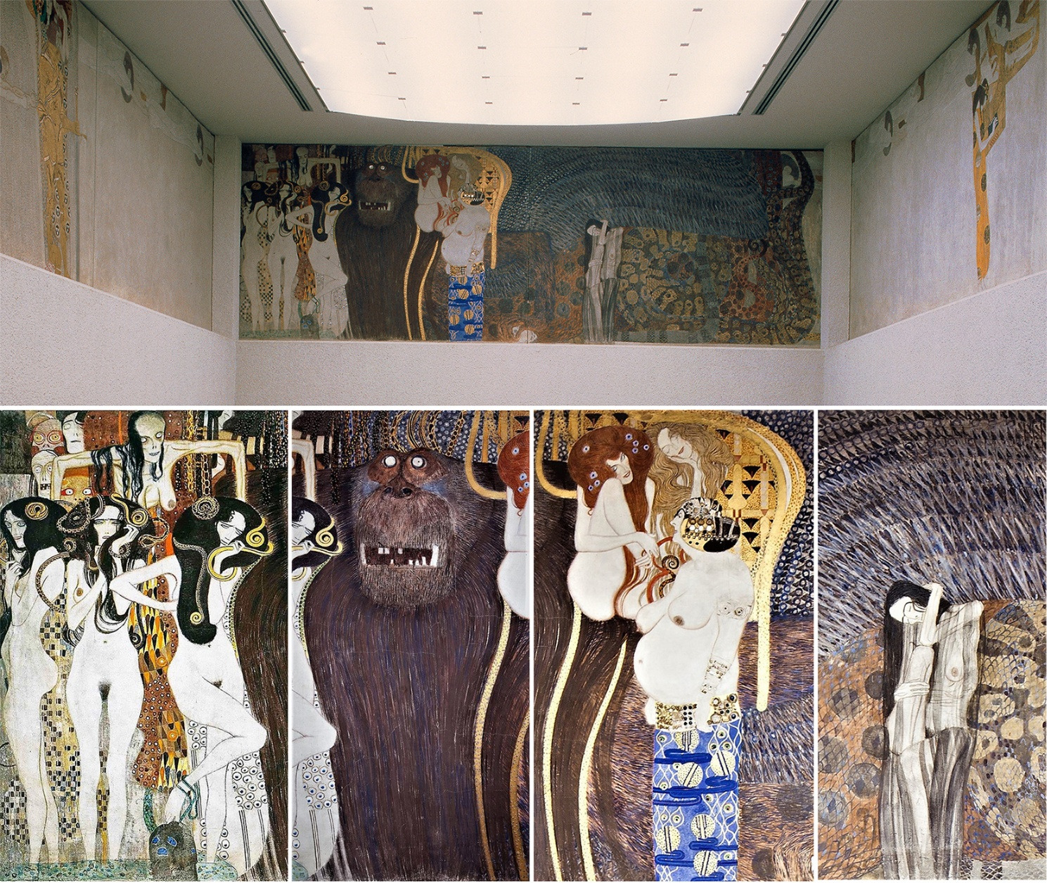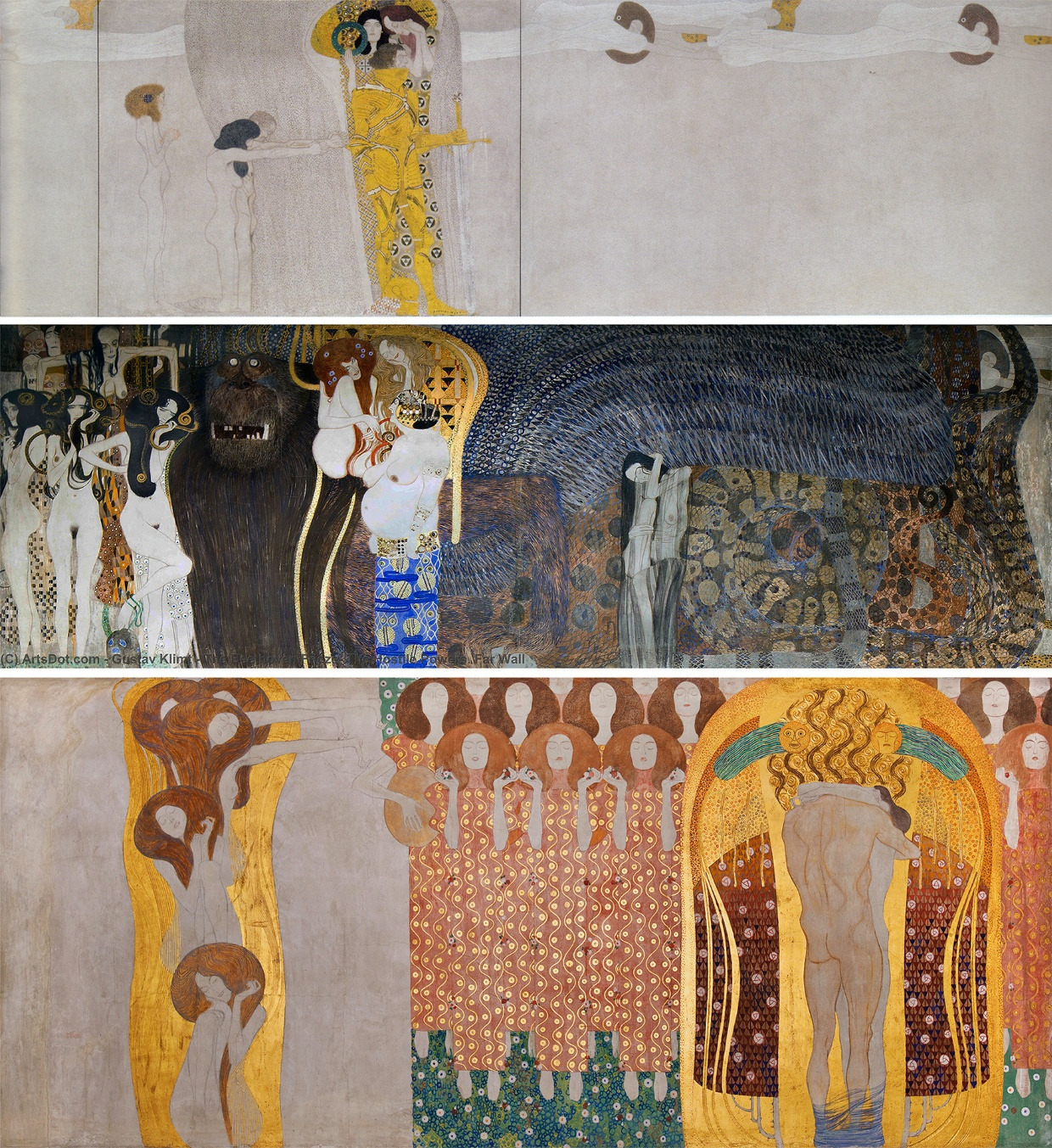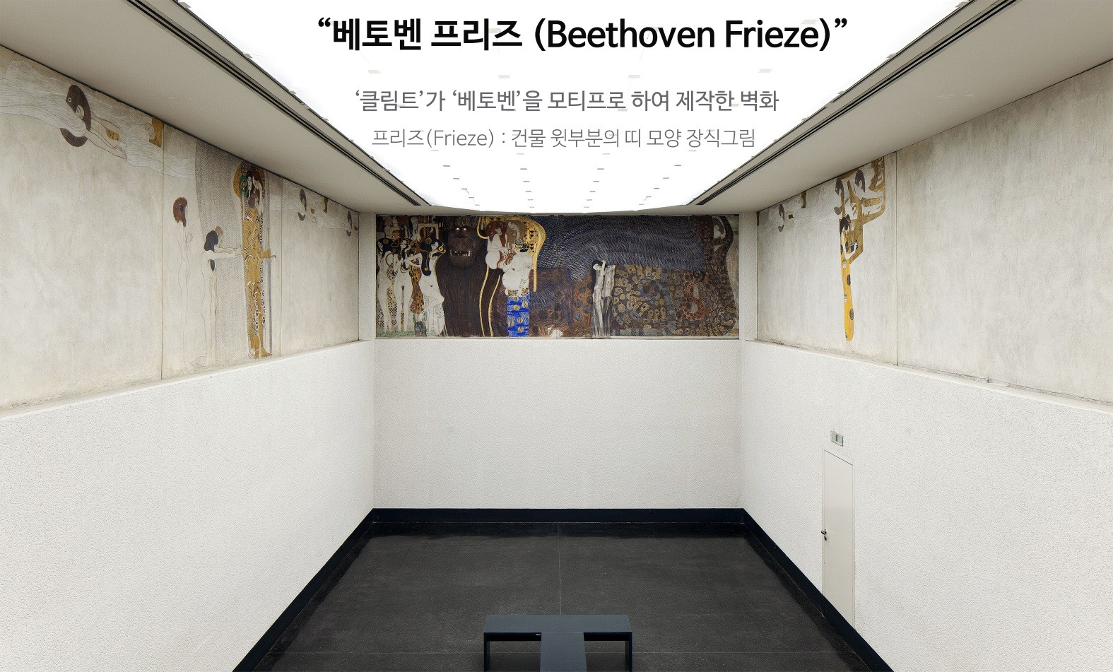 1902년, ‘클림트’는 비엔나의 제체시온 (Secession) 건물의 내부 벽에다 “베토벤 프리즈 (Beethoven Frieze)” 라는 34m짜리 벽화를 그립니다.