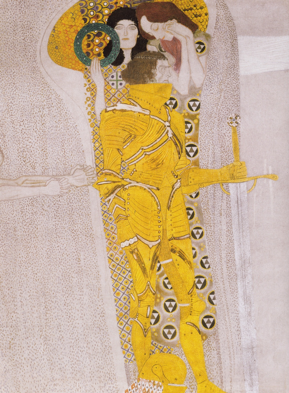 행복에의 열망을 시작으로, 적대 세력과 악, 인간의 연약함, 황금 갑옷 기사 등을 거쳐 '온세상에 보내는 입맞춤'으로 3면의 벽화는 마무리 됩니다.