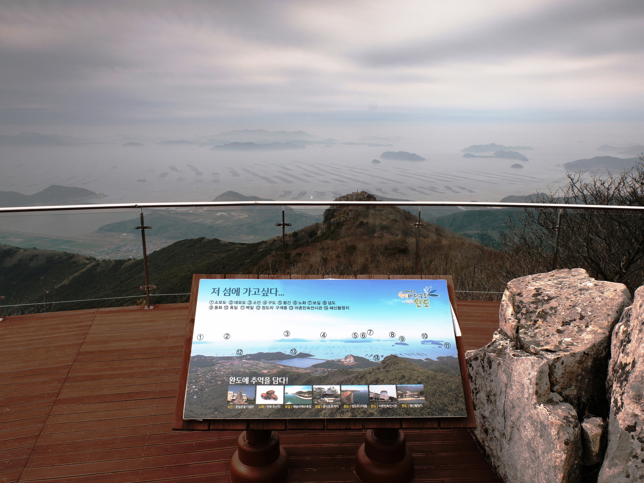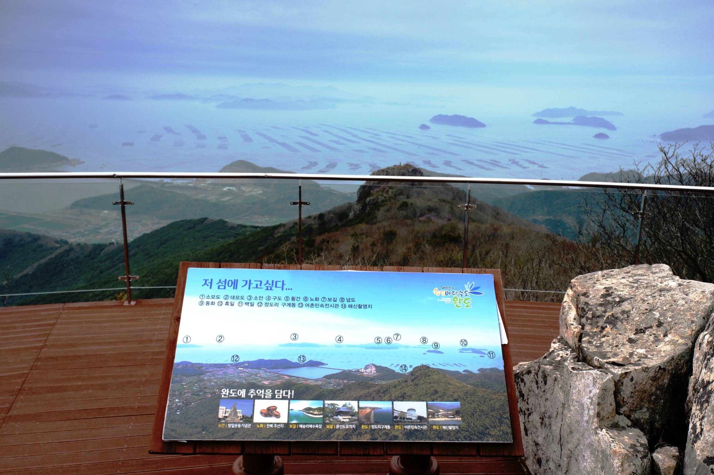 멀리 바다위 점점이 떠 있는 섬은 다도해 해상 국립공원임을 알려주니..날씨가 쪼매만 청명했어도 란 아쉬움도 묻어나는 시간 이었습니다...