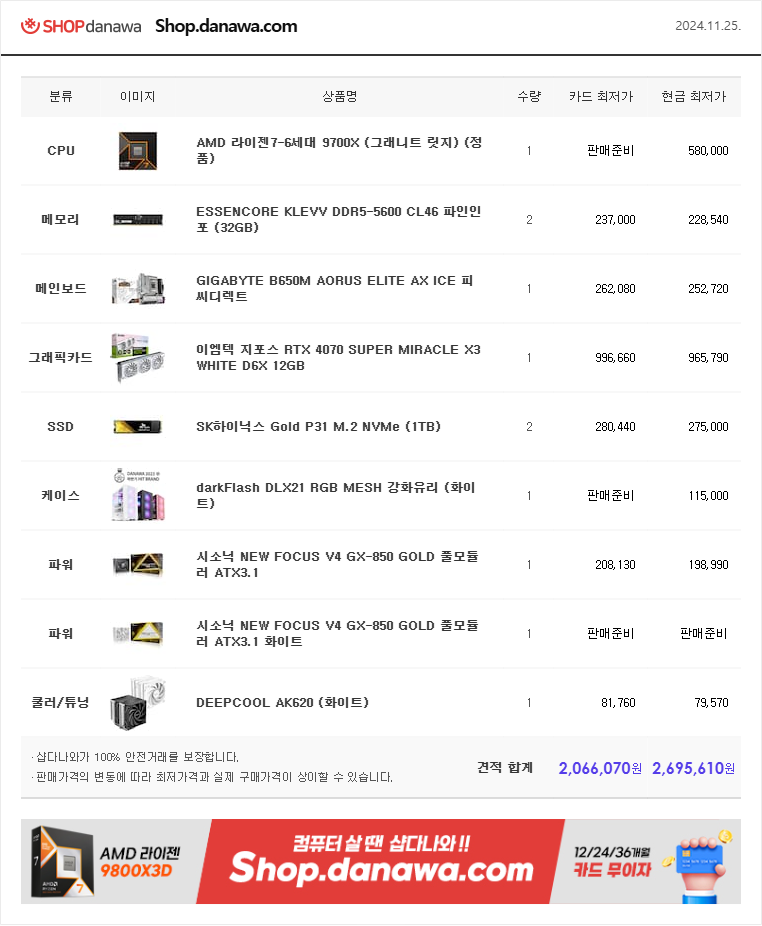 9700X는 딱히 어도비 계열 이슈는 없고 9700X 멀티팩으로 고르셔야될겁니다 (정품 품절 같네요) -