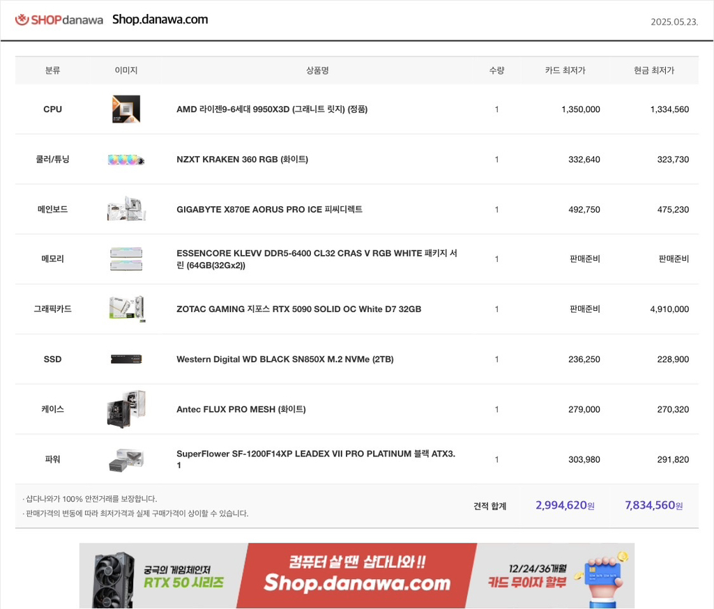 여기서 9950x3d와 5090으로 맞출려고 합니다
