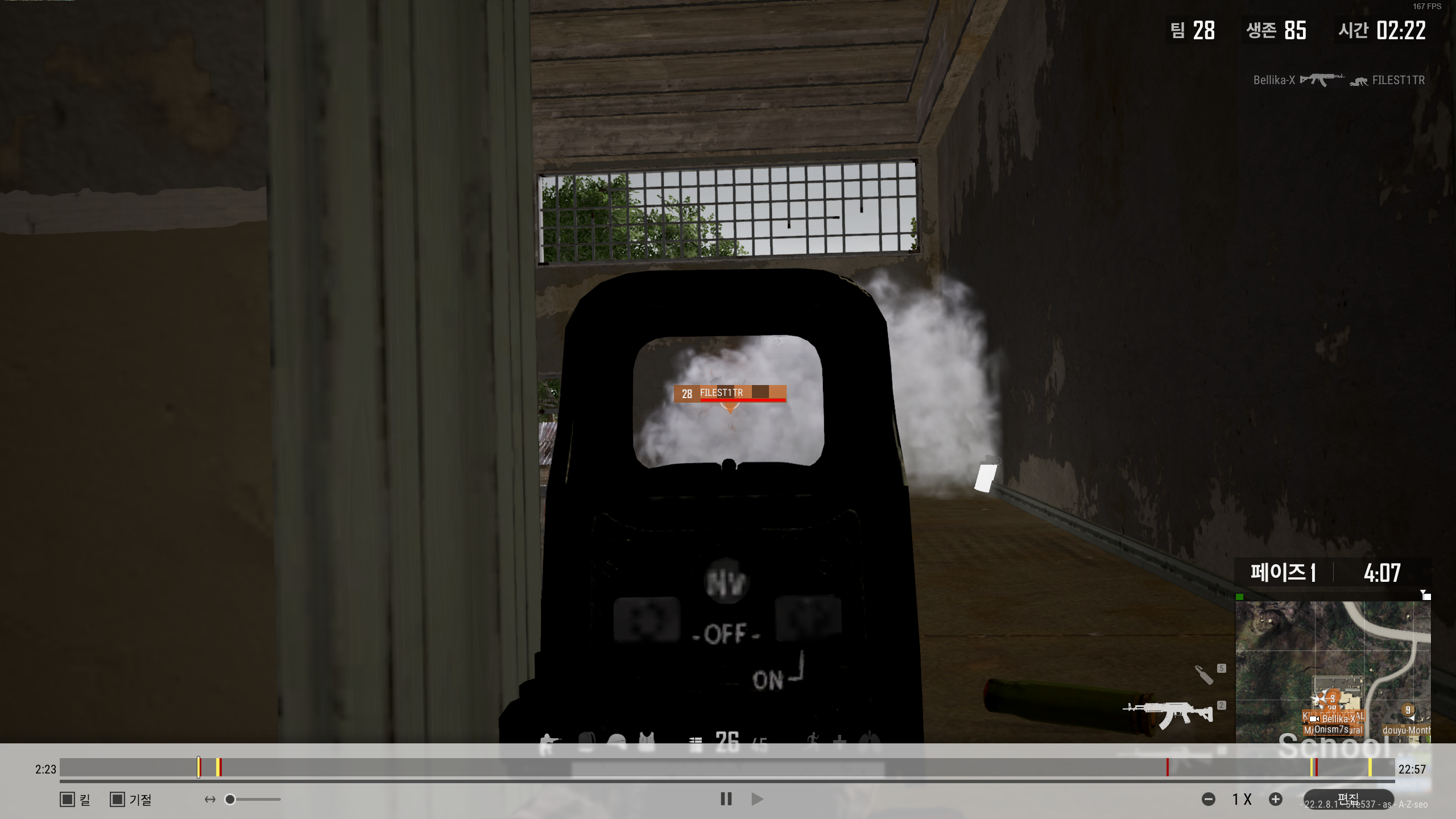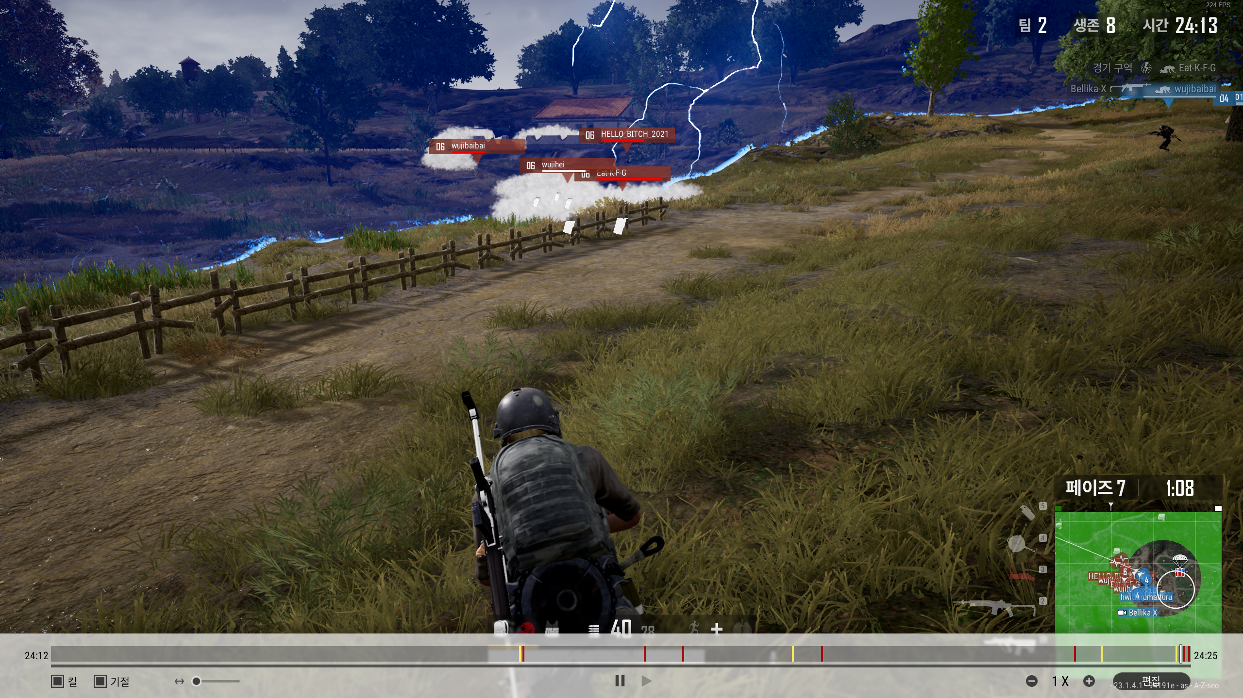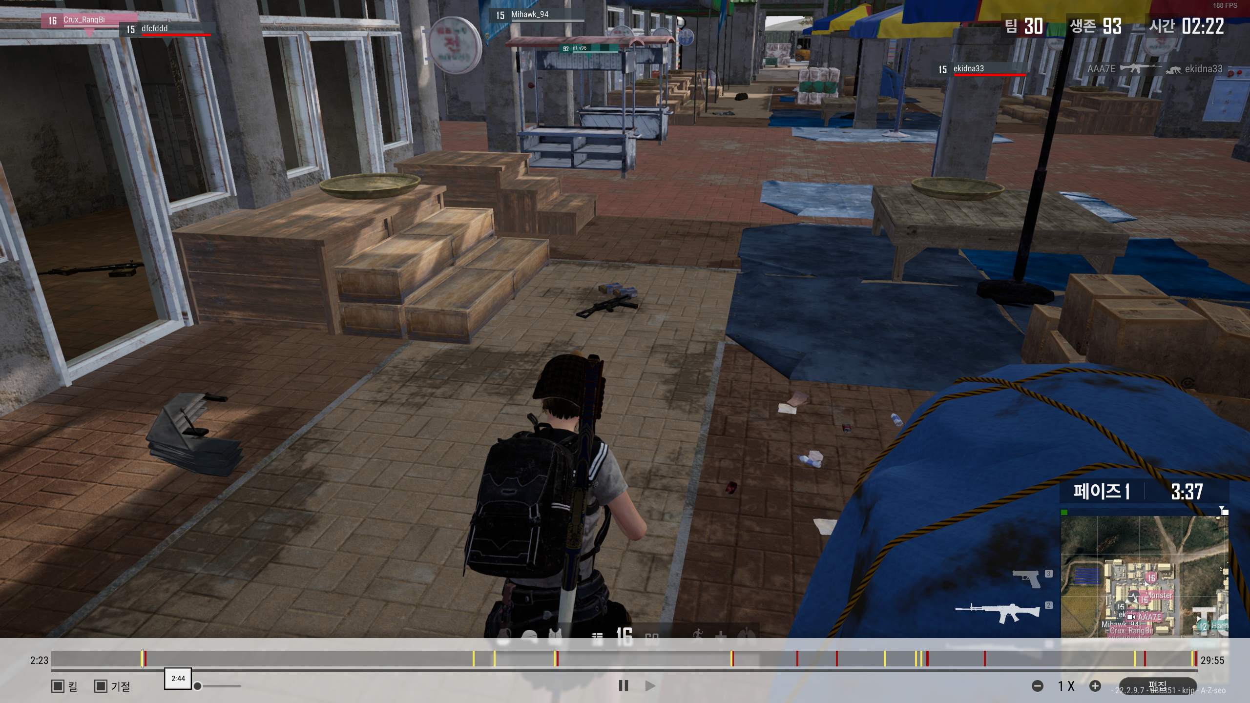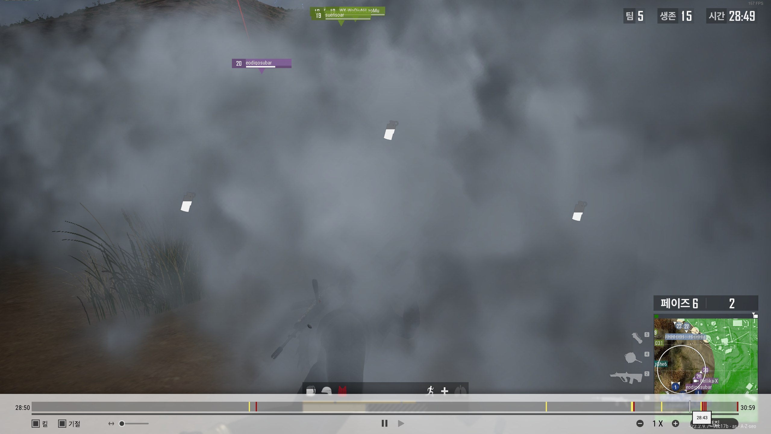 배그 벤치때 킬 기절 버튼으로 교전구간부터 볼 수 있습니다.