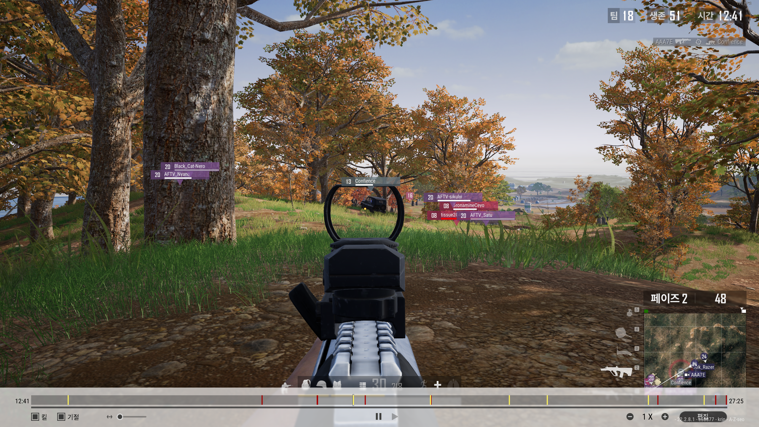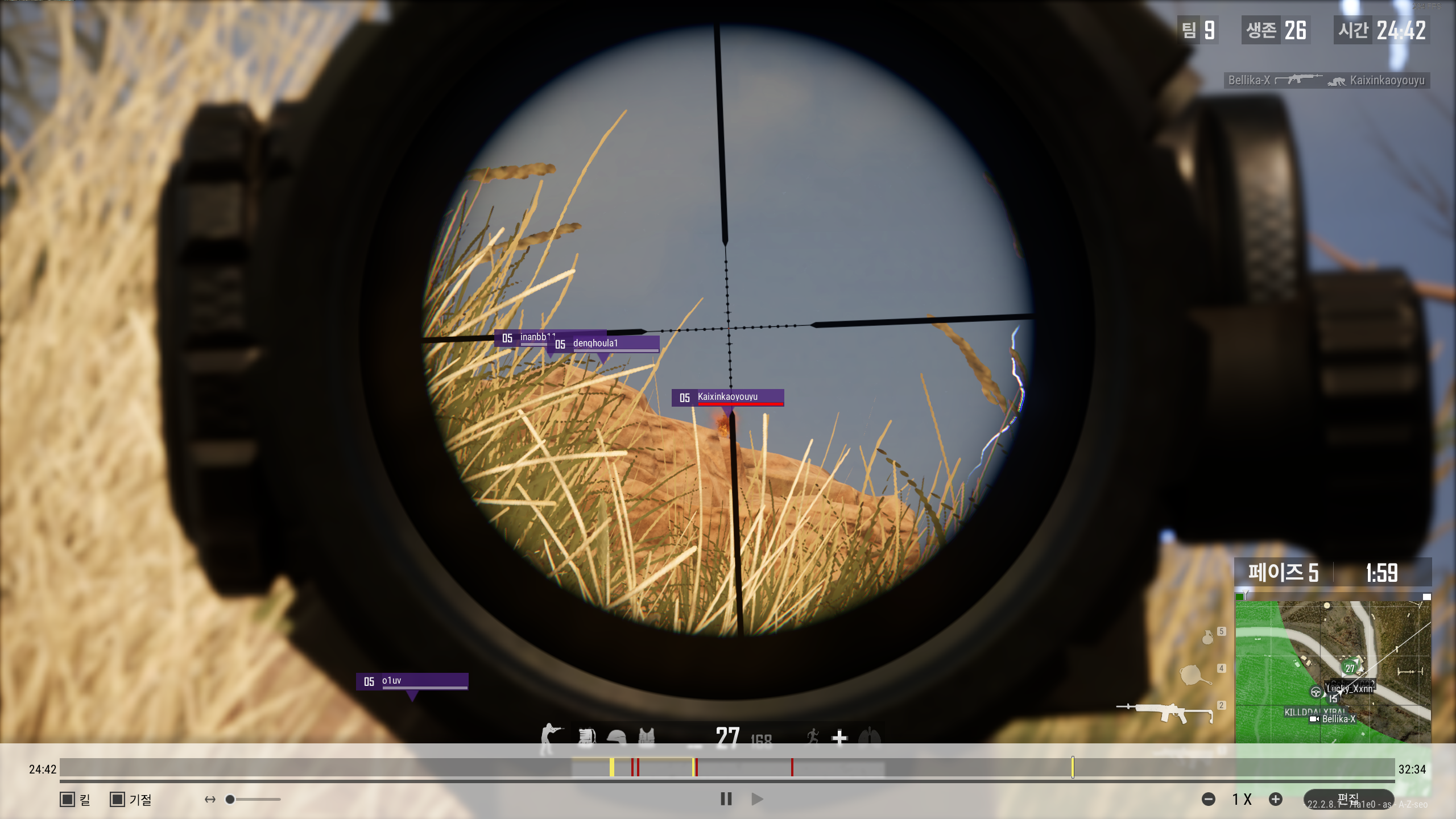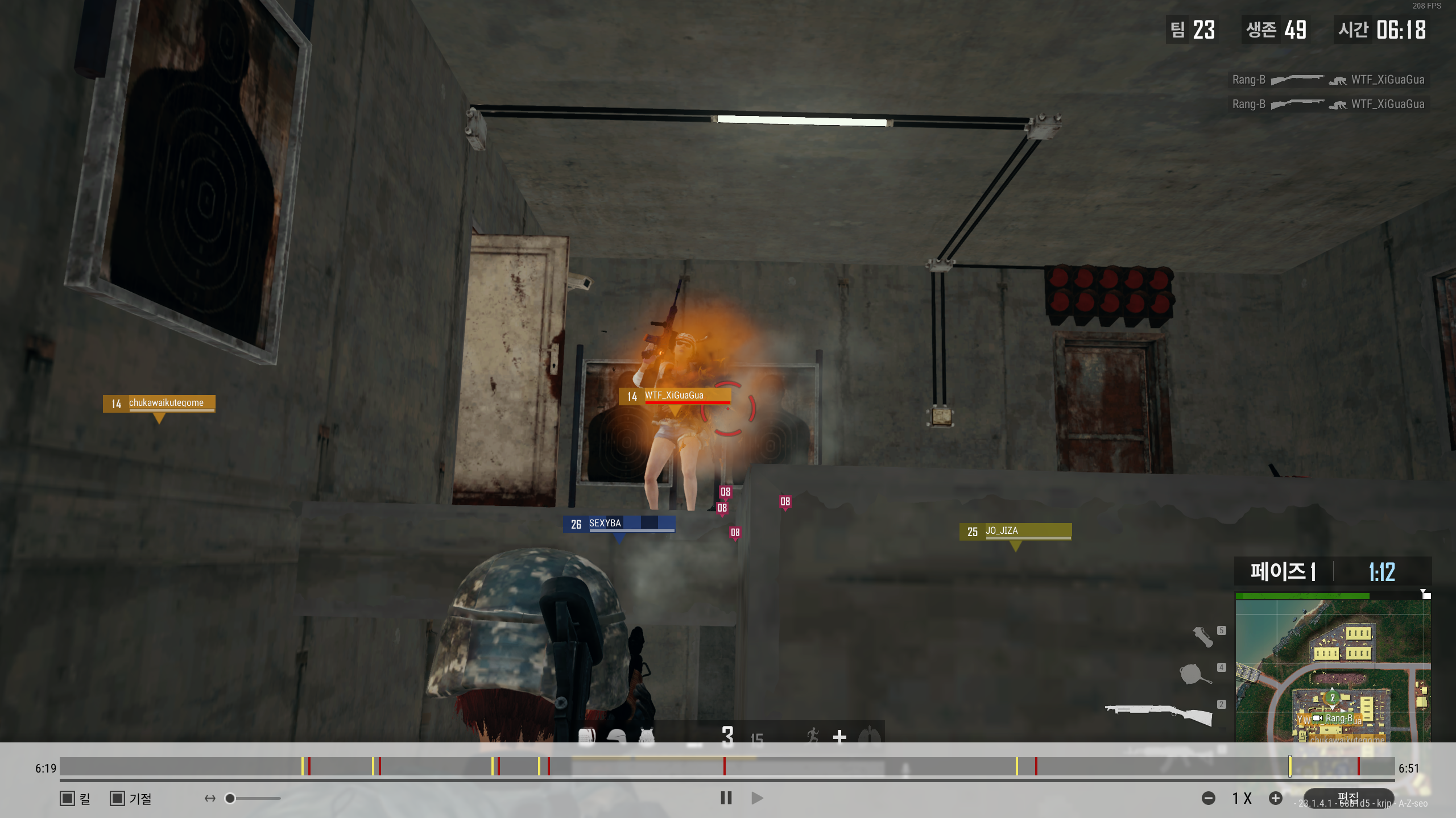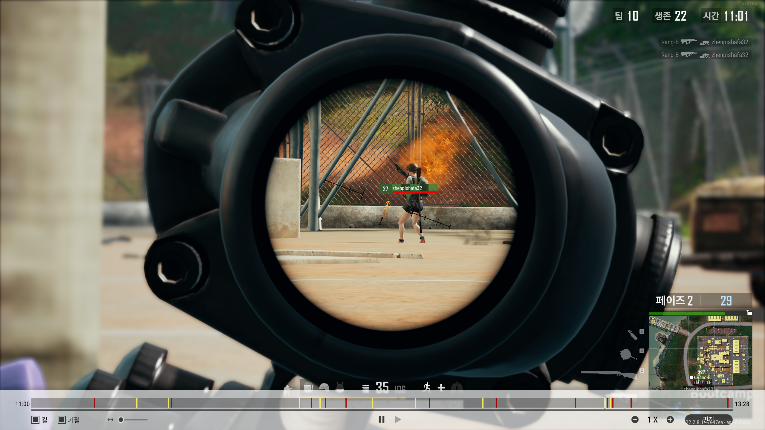 배그 벤치때 킬 기절 버튼으로 교전구간부터 볼 수 있습니다.