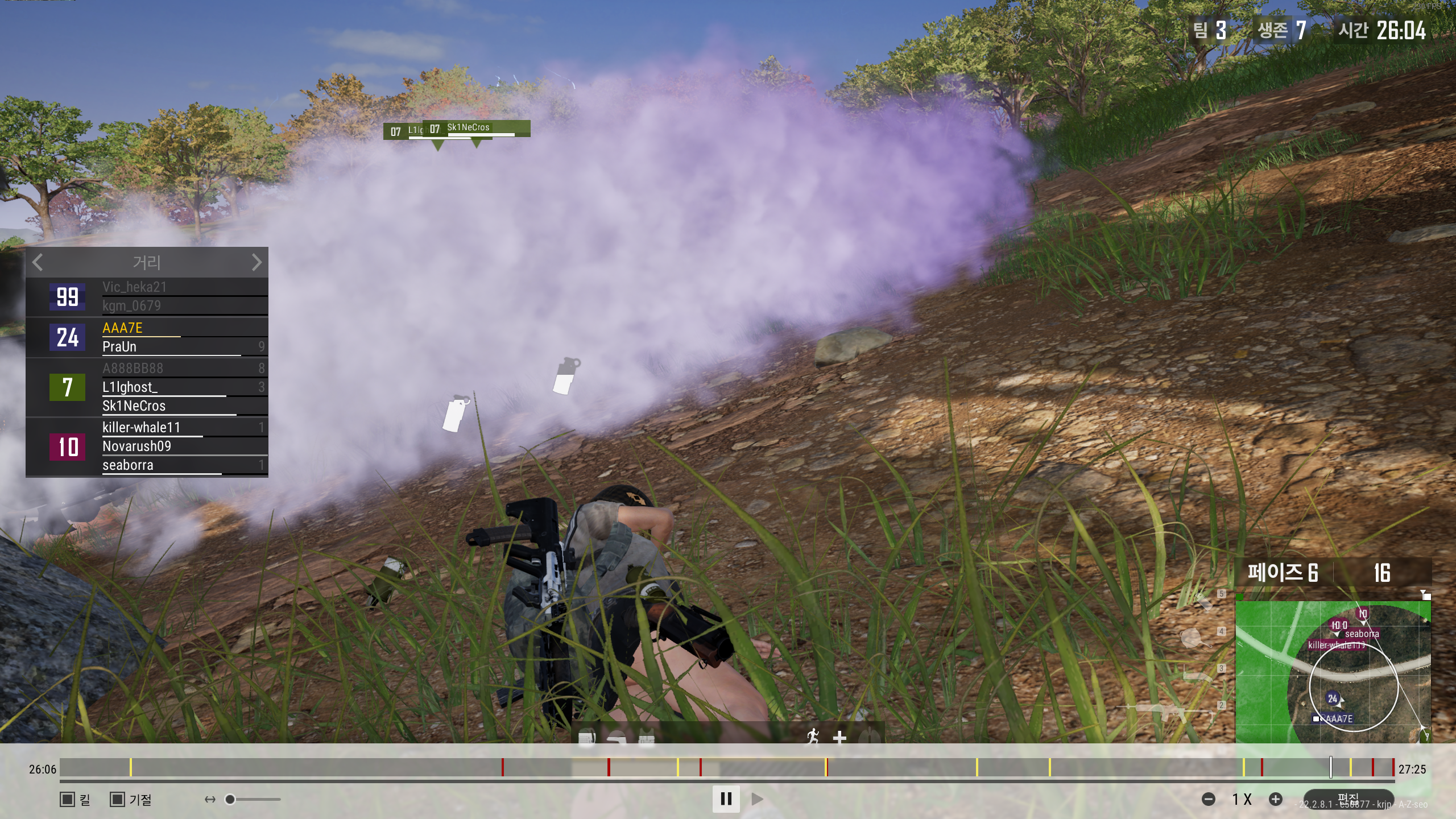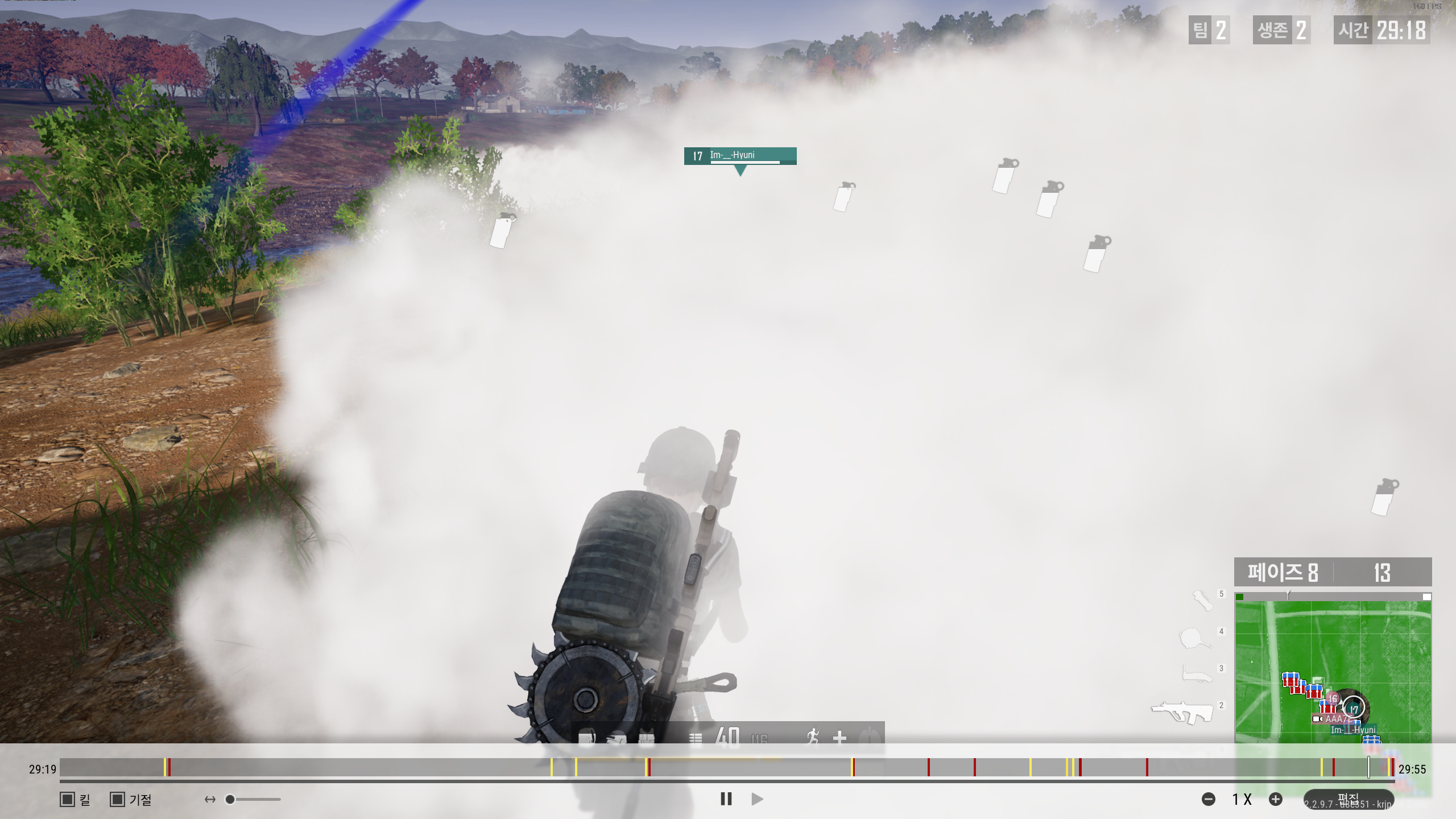 예측해 폭탄날아와 연막을 던지진 않는데 연막깔 상황없으면 기절한 팀원한테 일부러 연막을