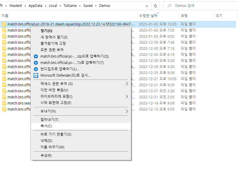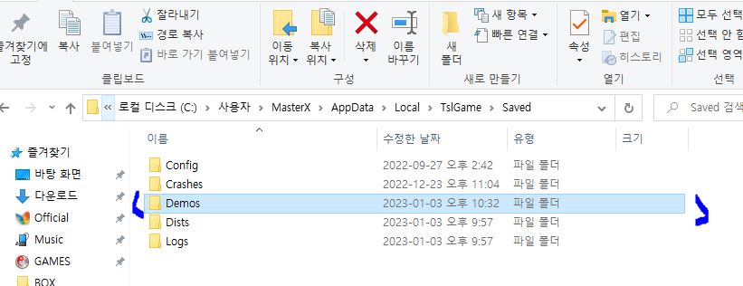 C:\Users(사용자)\본인PC이름\AppData\Local\TslGame\Saved\Demos