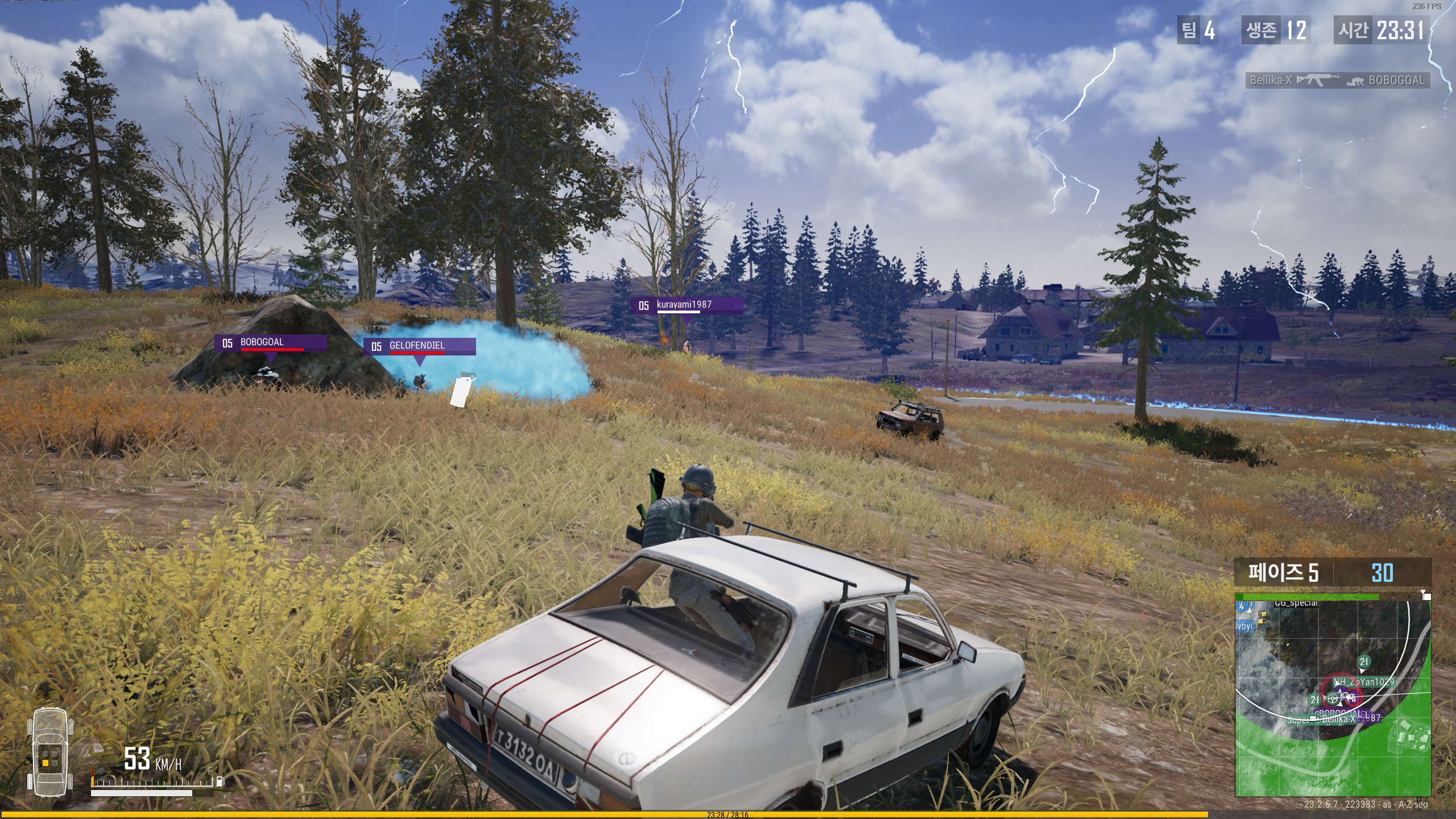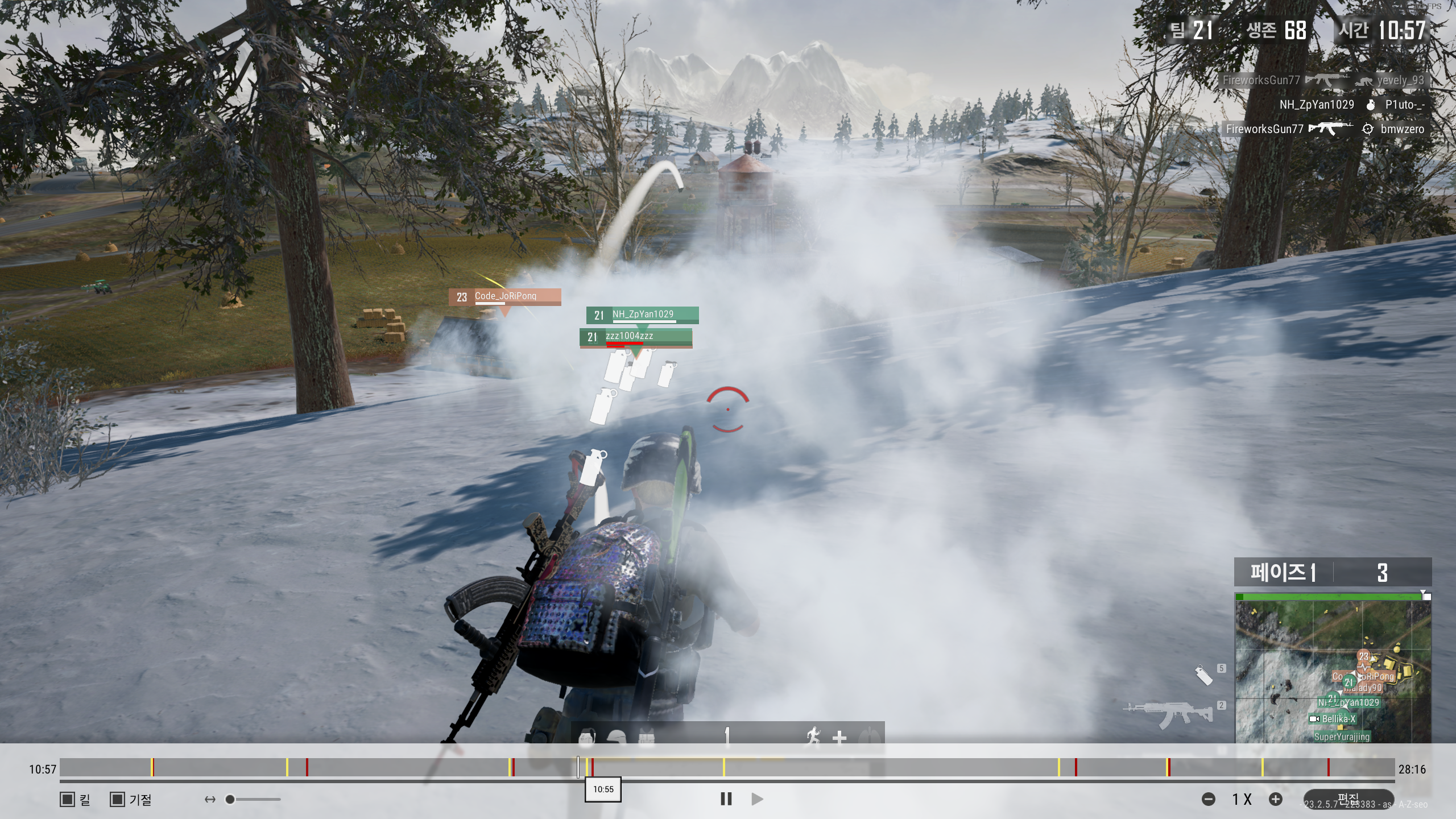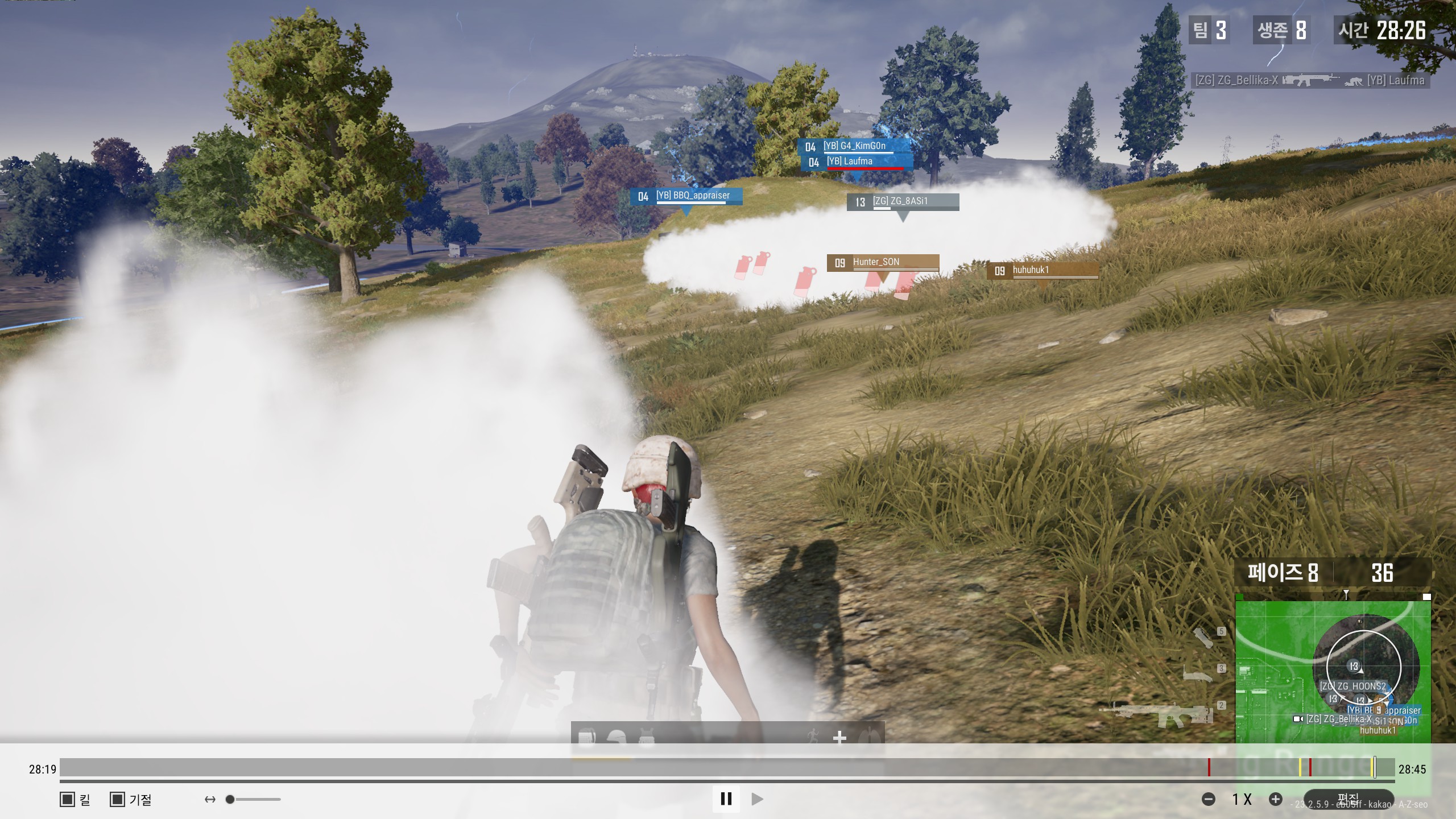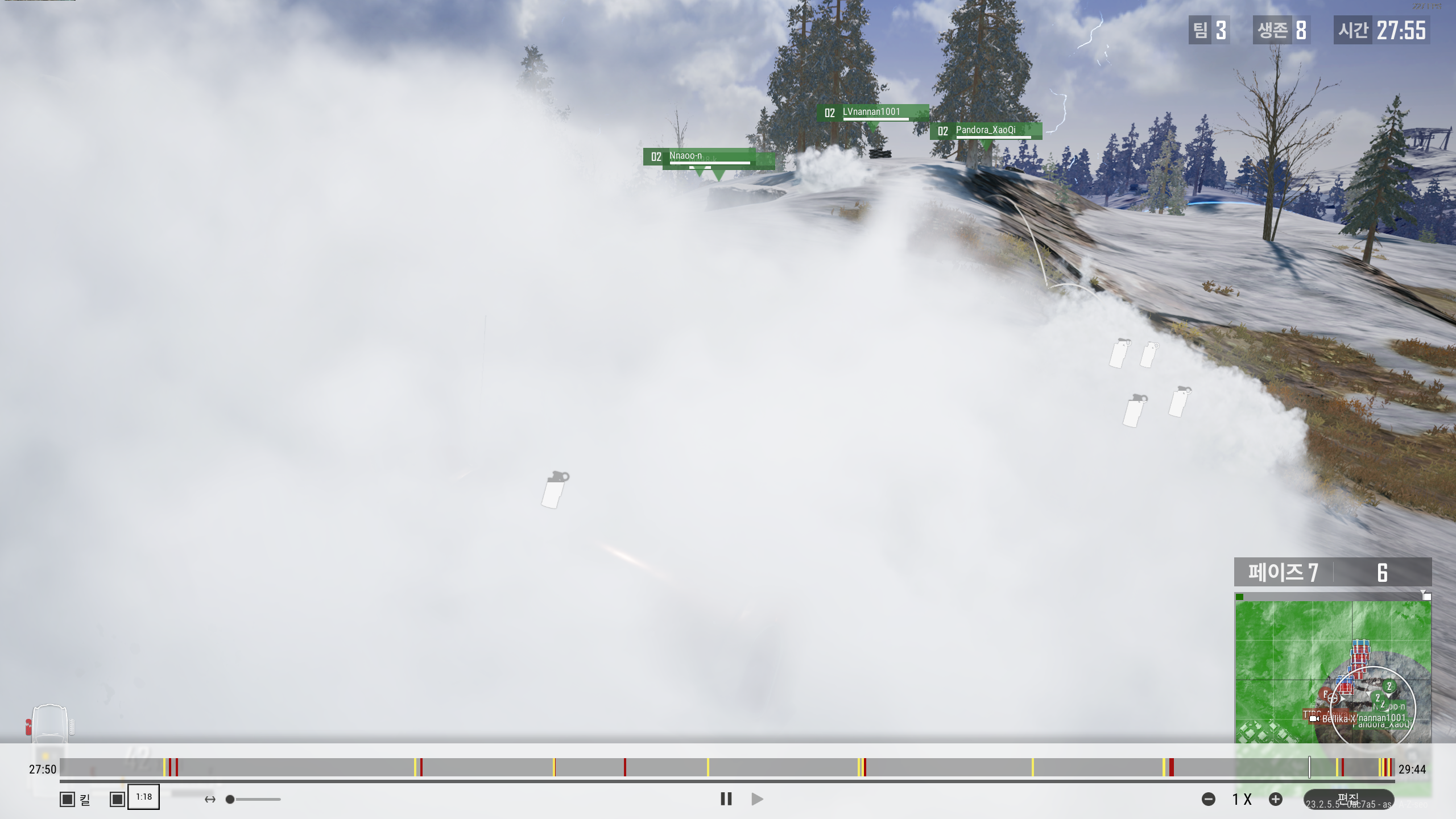 에란겔 스쿼드 (극후반 교전, 연막탄 15개 이상 투척[아쉽게도 연막안X]) - 연막갯수연산 벤치용