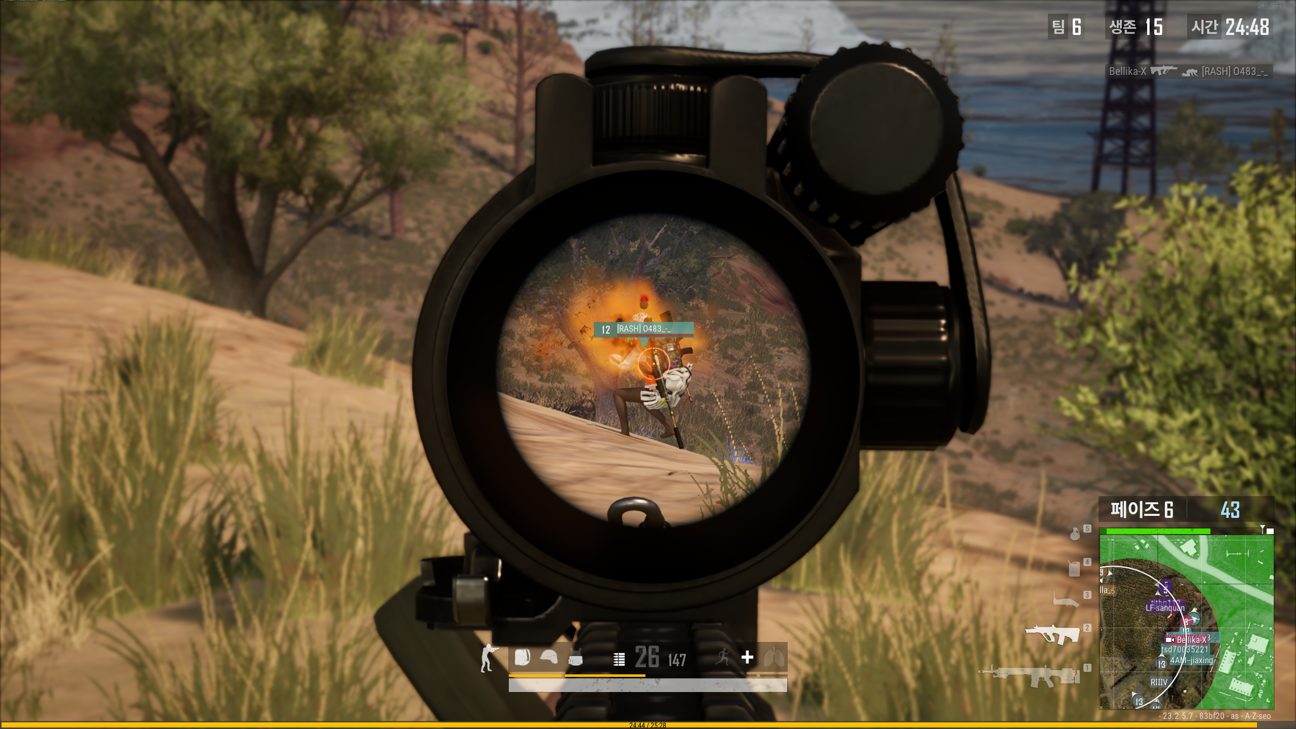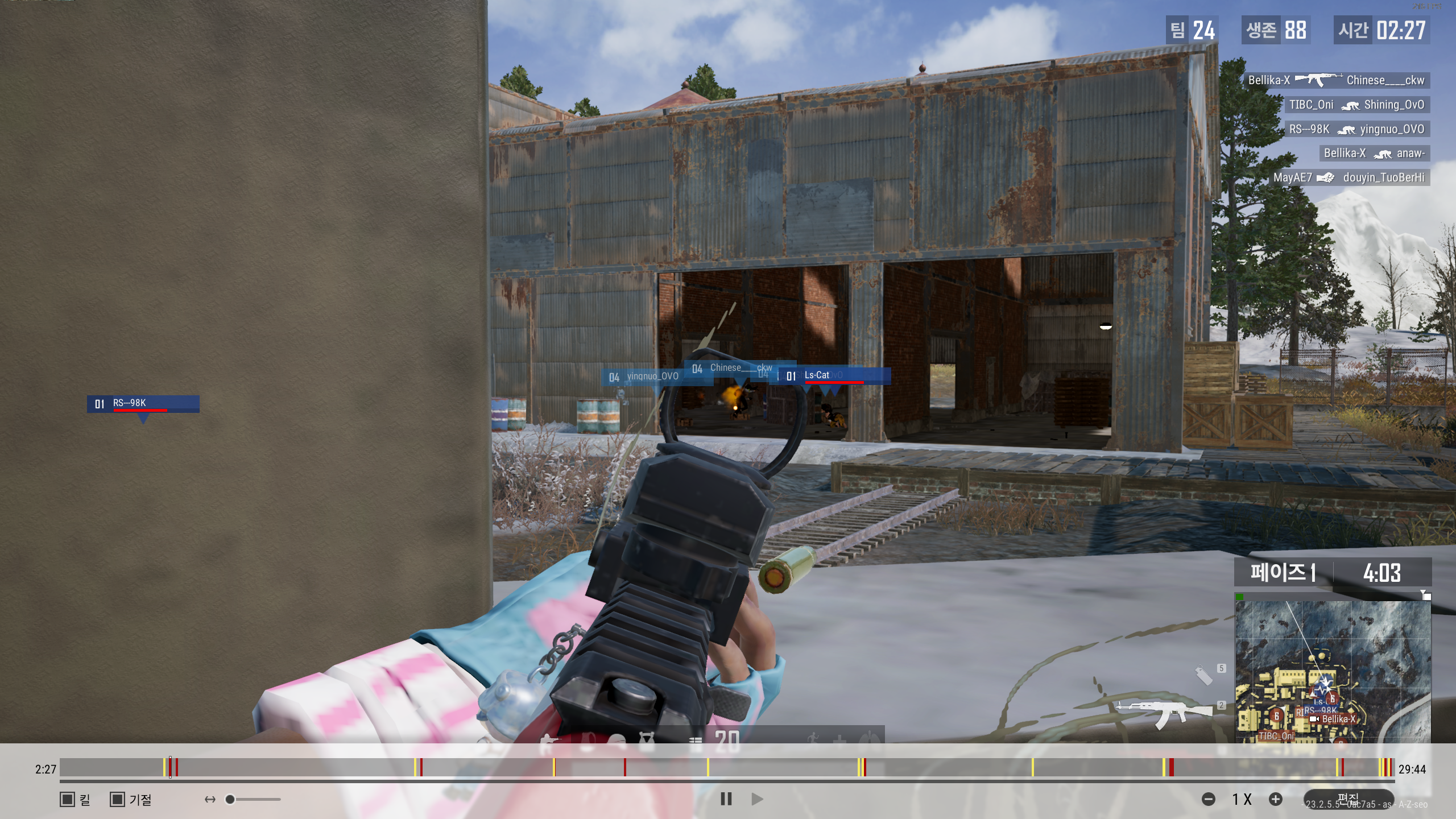 에란겔 스쿼드 카배 경쟁전 (극후반 교전 벤치용) 약 26~27분 부터