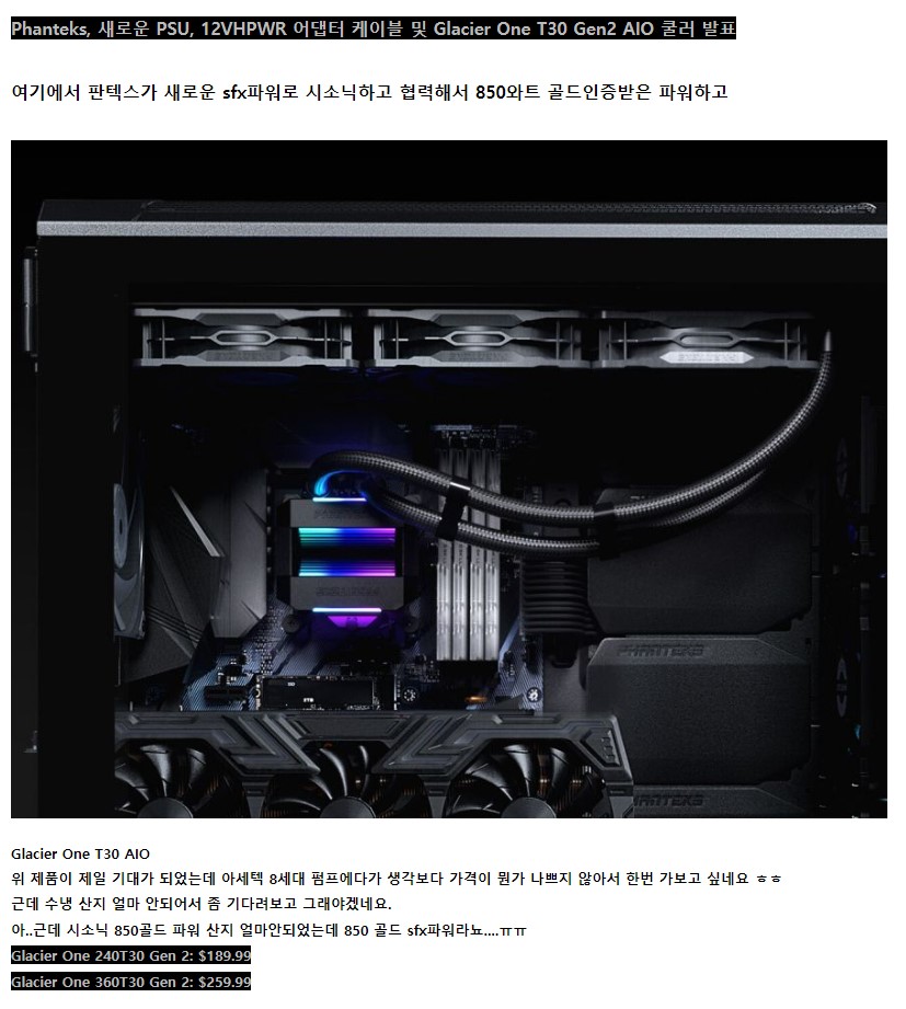 라디에이터 두께 38mm + 펜텍스 T30팬 30mm 해서 총 합 68mm의 두께를 자랑하는 13900ks에 대놓고 쓰라고 만든 아세텍 8세대 펌프 제품.. 당연히 360 라디에이터 구매입니다. 대양케이스 언능 일해라..