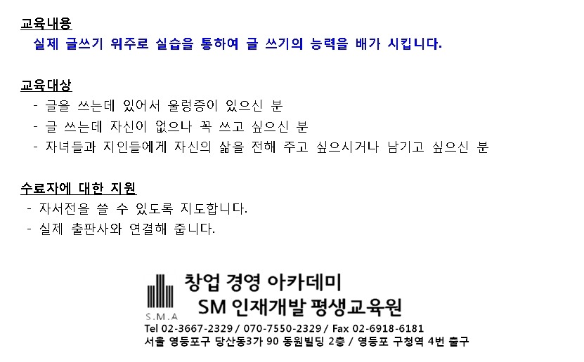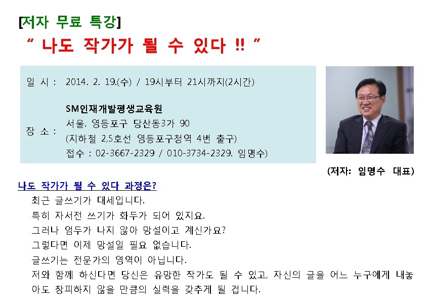 ■□■□■□(( 저자무료특강 ))나도 작가가 될 수 있다!!■□■□■□ 작성자겸댕|작성시간14.02.10|조회수24 목록 댓글 0 글자크기 작게가 글자크기 크게가 특강신청접수 및 문의:02-3667-2329 다음검색 현재 게시글 추가 기능 열기 북마크 공유하기 신고 센터로 신고 댓글 댓글 0 댓글쓰기 답글쓰기 댓글 리스트