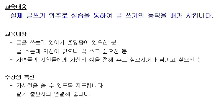 □■□■□■□■□■<<글쓰기특강 교육생 모집>>□■■□■□■□■□ 작성자겸댕|작성시간14.02.24|조회수38 목록 댓글 0 글자크기 작게가 글자크기 크게가 교육신청 및 문의: 02-3667-2329 다음검색 현재 게시글 추가 기능 열기 북마크 공유하기 신고 센터로 신고 댓글 댓글 0 댓글쓰기 답글쓰기 댓글 리스트