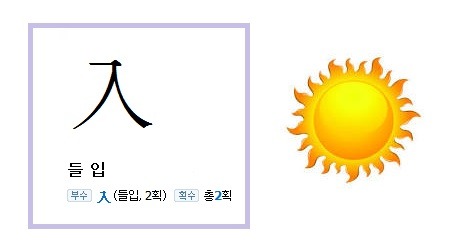 이 형태는 들 입(入)자가 태양 속에 들어 있는 형태입니다.