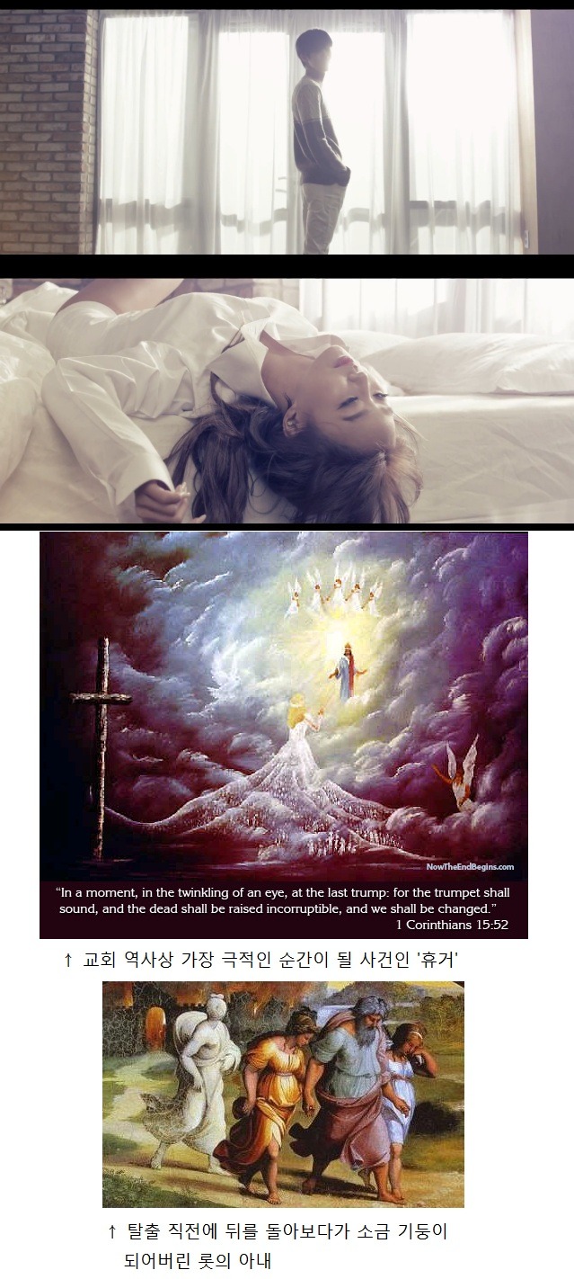 흰 옷을 입은 효린(=여자)은 예수님을 기다리는 교회를 상징하므로,