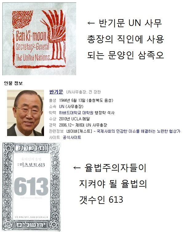 여기에, 삼족오 및 반기문 총장의 의미를 더하면,