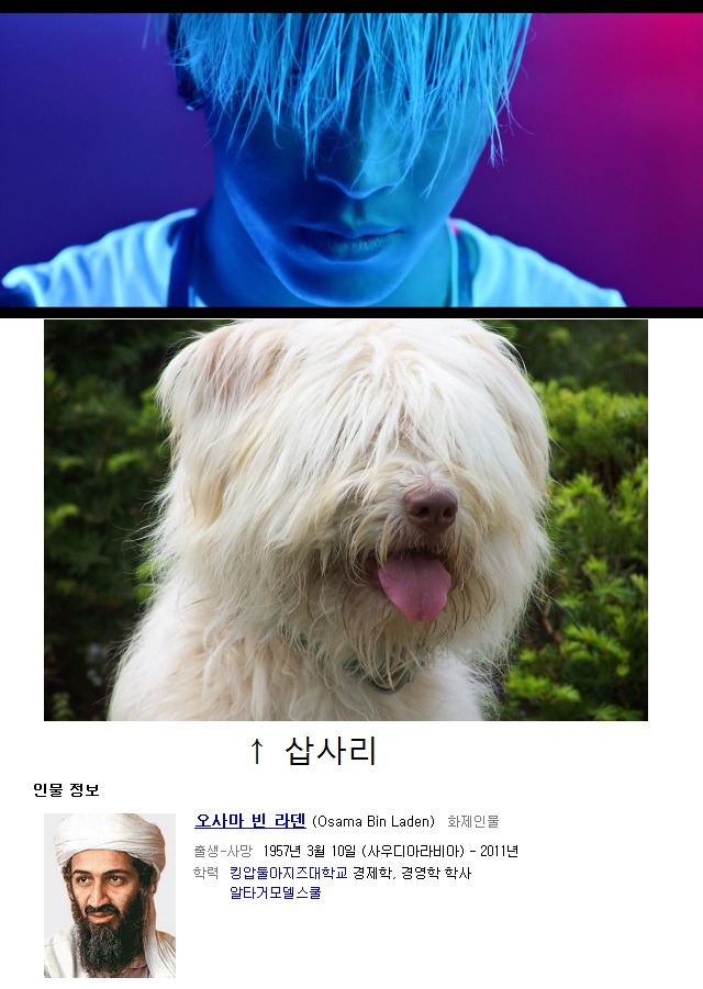 주로 흰 털을 가지고 있으며, 머리털 때문에 눈이 가려지는 특징이 있는 개[犬]인 삽사리를 연상시킵니다.